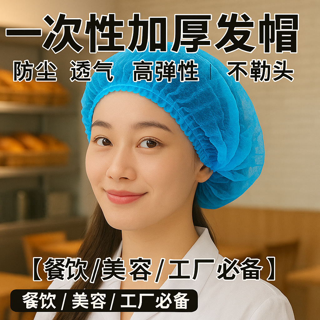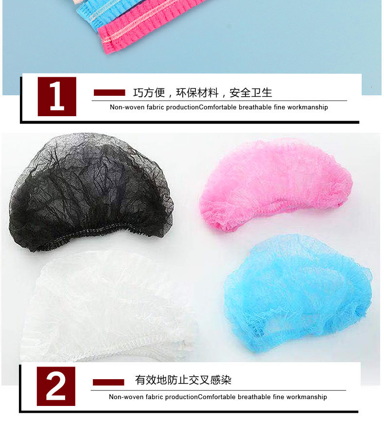 Одноразовые шапки, шапки для работы с едой, нетканые пылезащитные дышащие шапки для поваров, головные уборы, защита от выпадения волос, защитные шапки с капюшоном и плоским верхом.