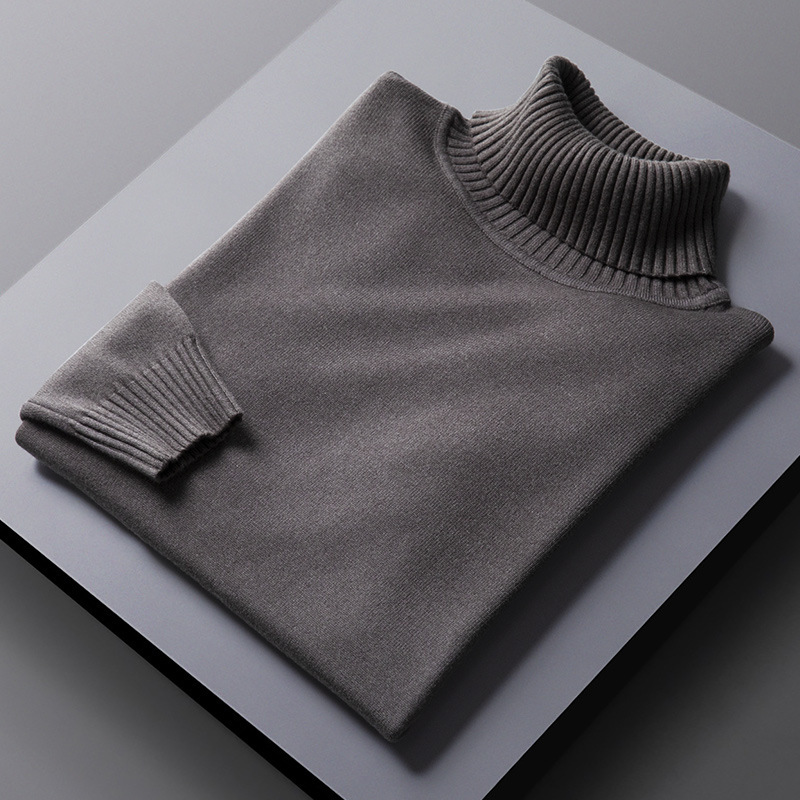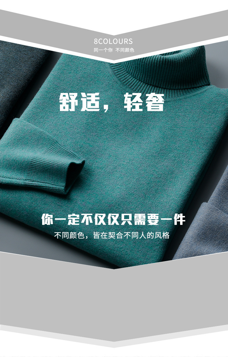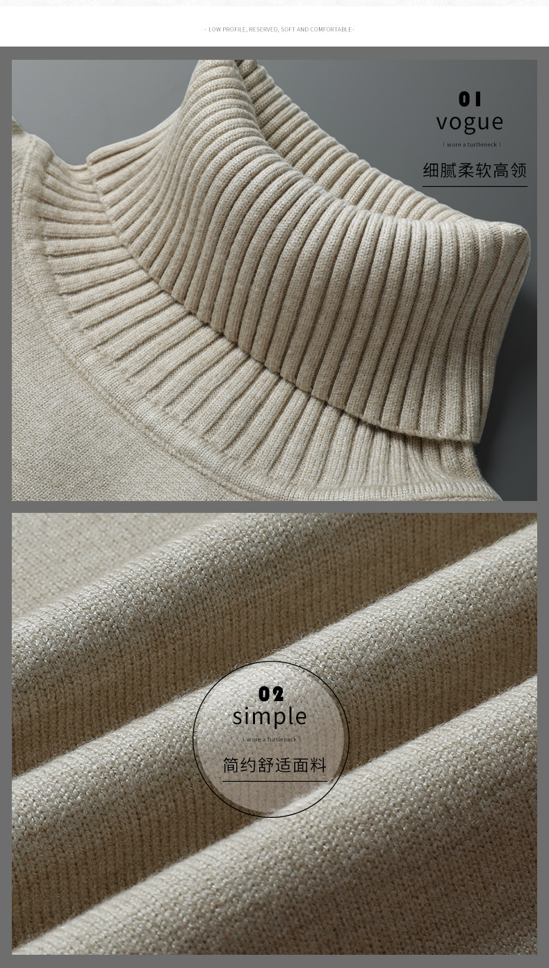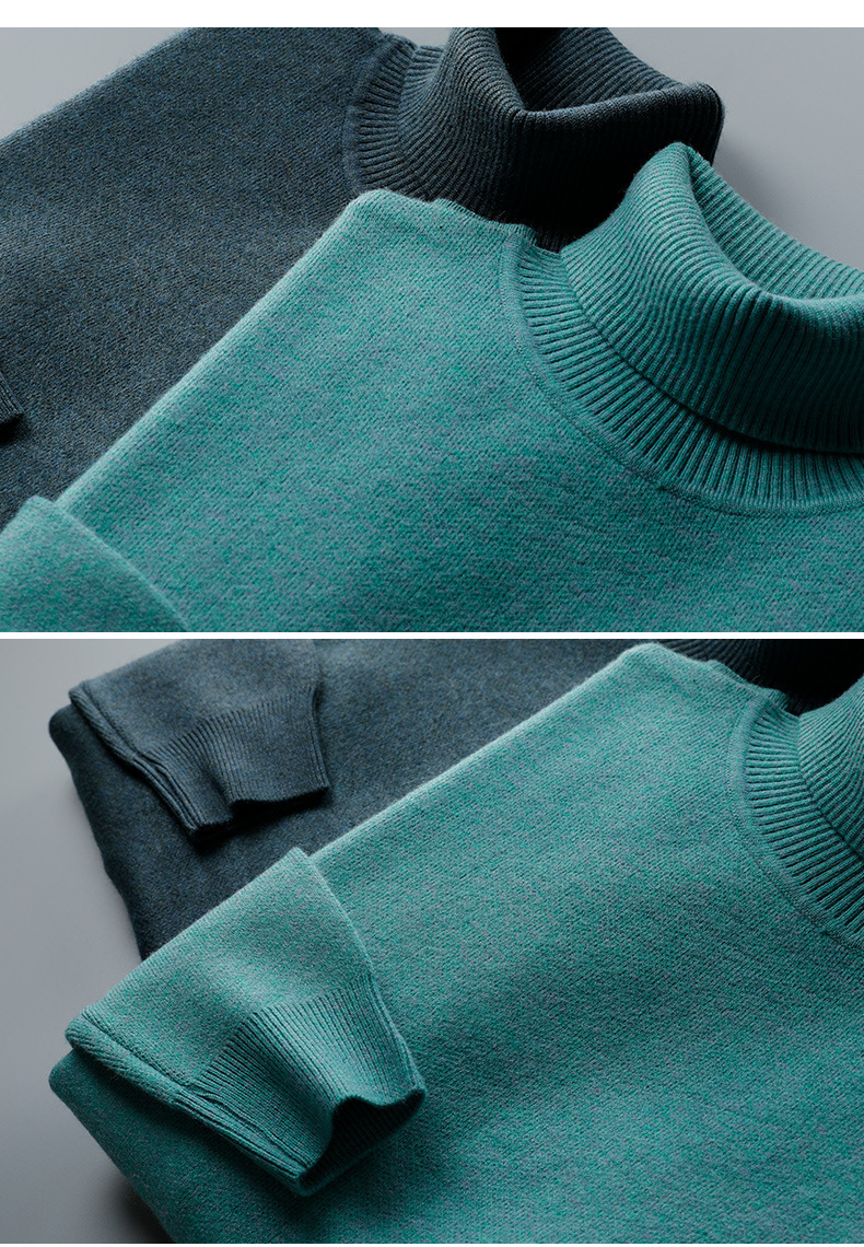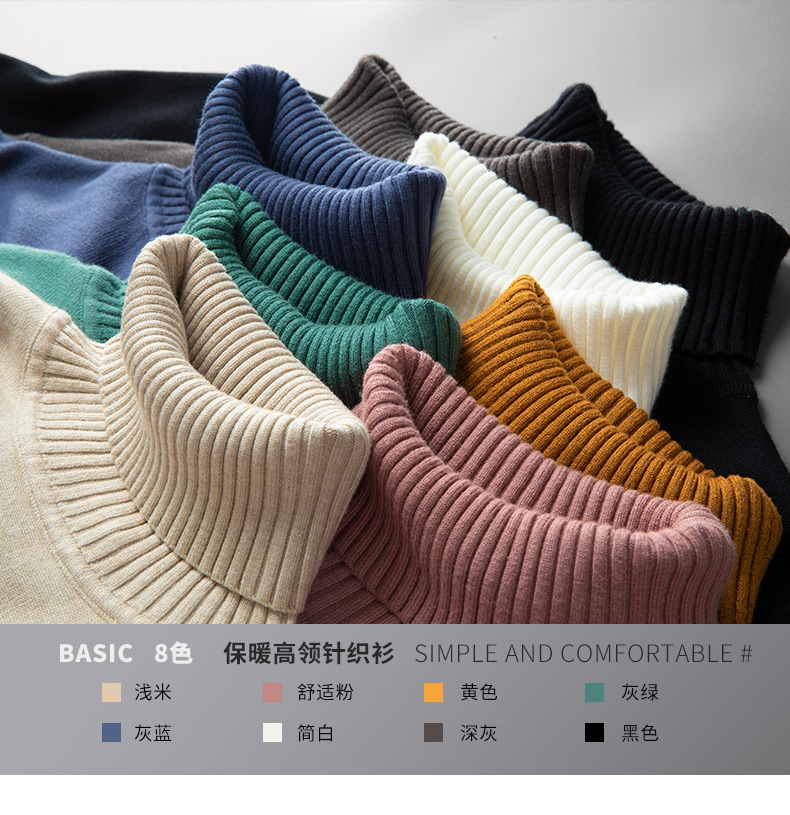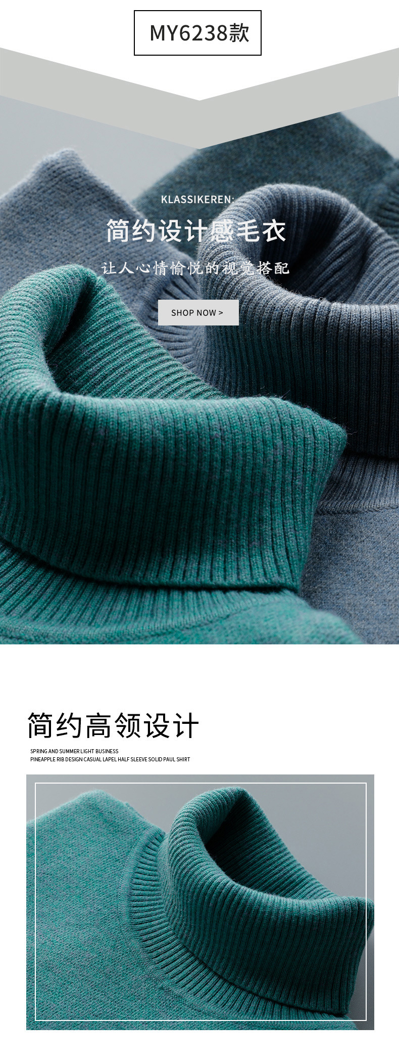Оптовая продажа мужских свитеров с высоким воротом, осенне-зимний стиль, теплый корейский вариант с двойным воротником, приталенный крой, с подкладкой, весенний трикотаж, повседневный и универсальный.