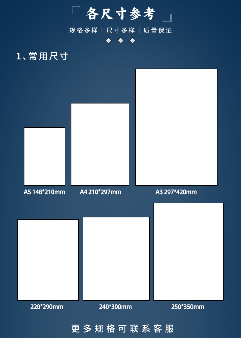 A5 15*21cm; A4 21*29.7cm; 24*30cm; 24*35