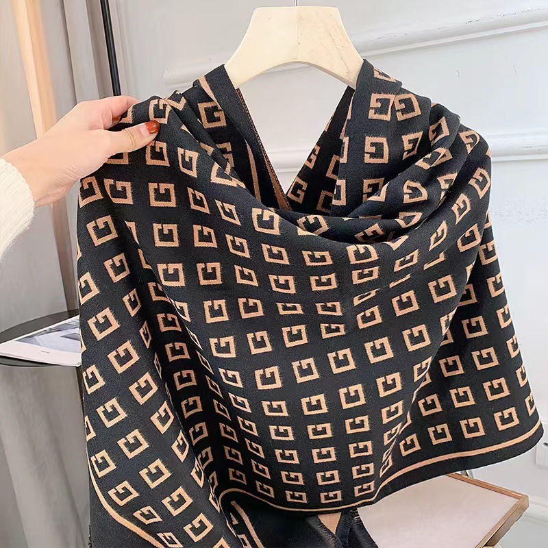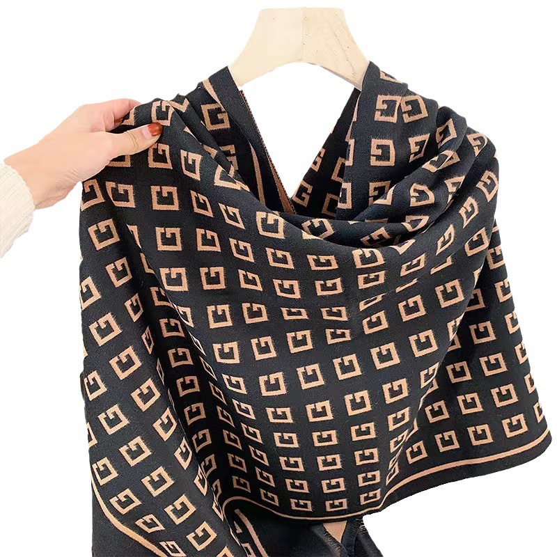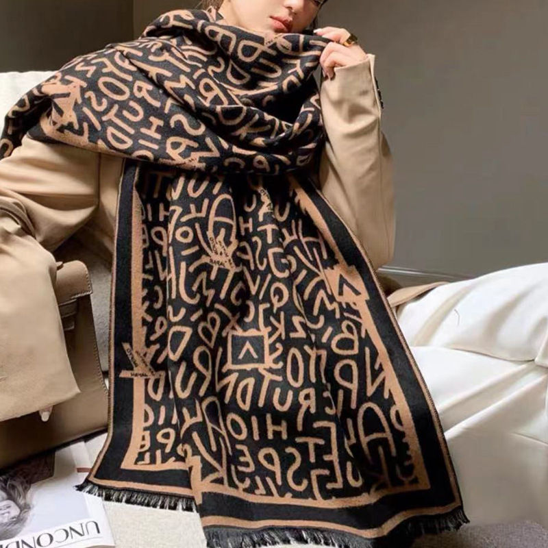 Осенне-зимний новый кашемировый шарф с буквенным принтом для женщин, теплый шарф в стиле интернет-знаменитостей k, универсальная шаль, шарф в шахматном порядке