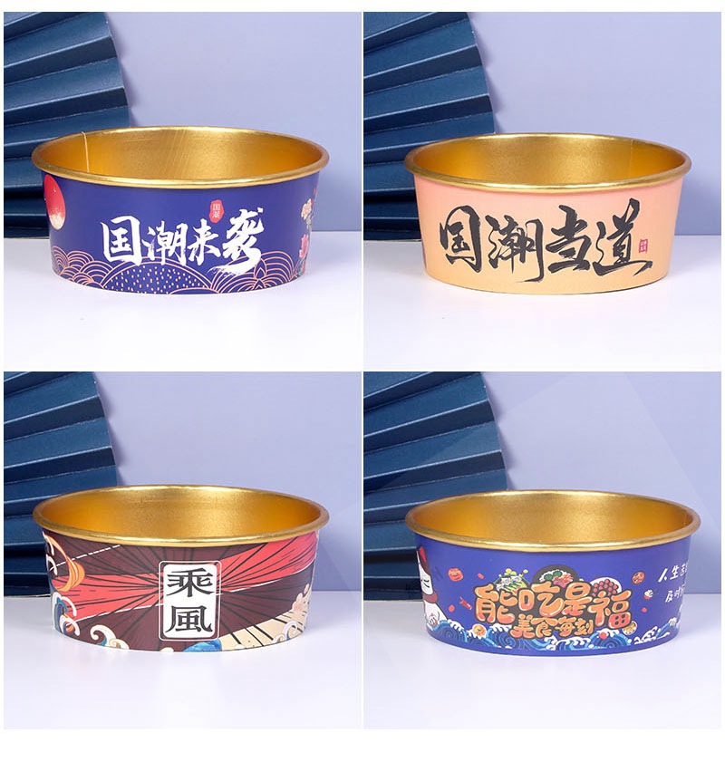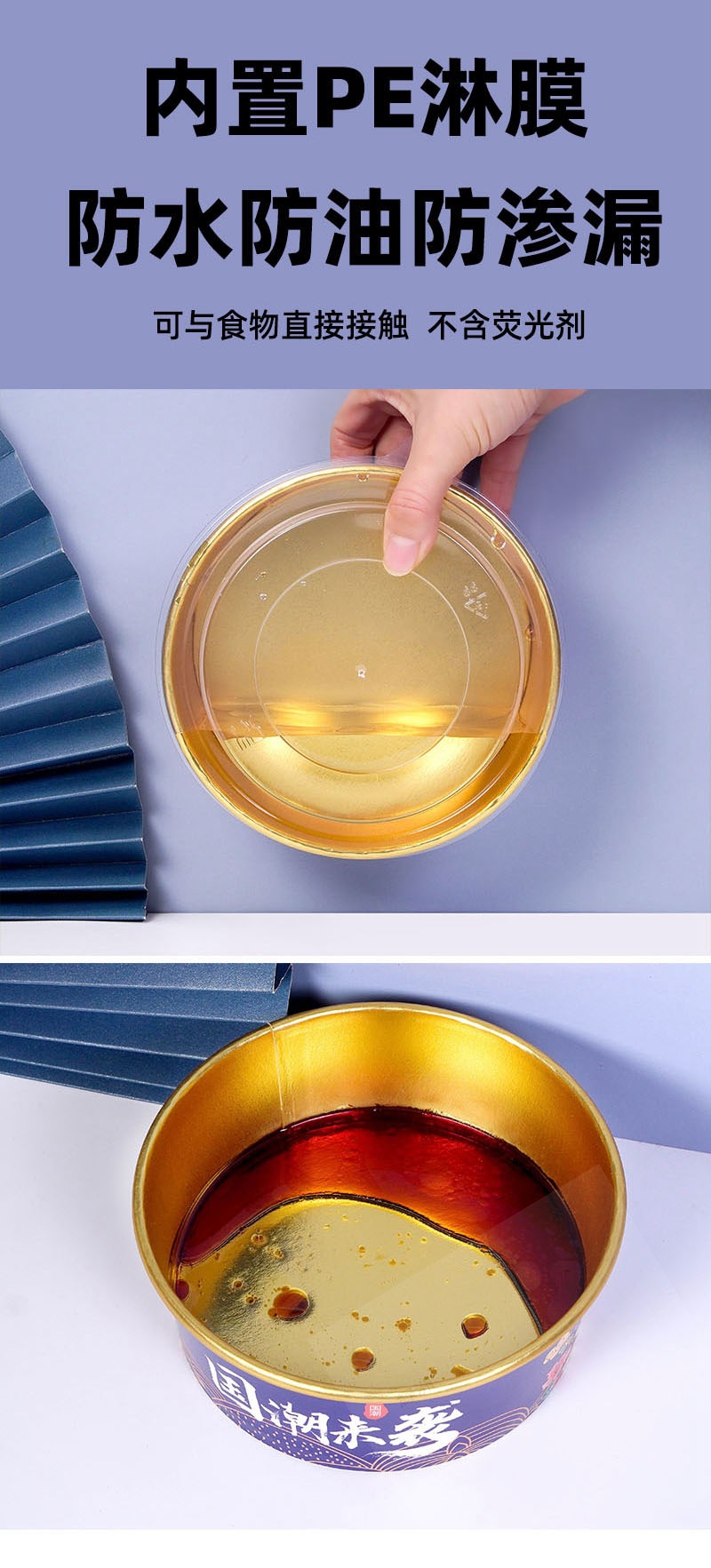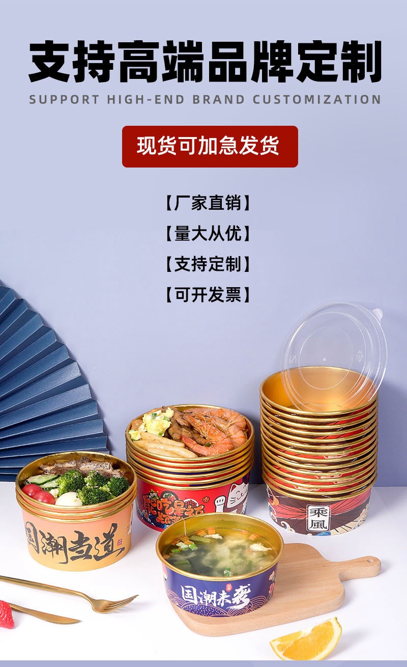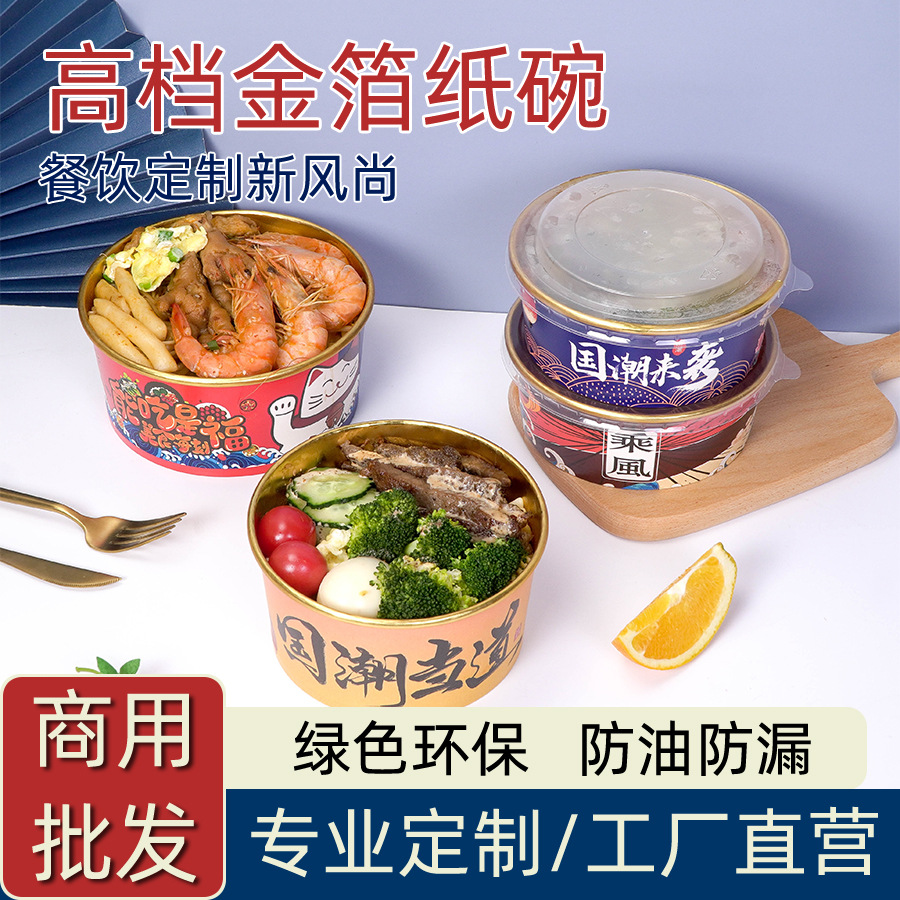 Одноразовая бумажная миска из золотой фольги, круглая утолщенная изолированная коробка для обеда, упаковочная коробка для легких закусок, острая лапша, индивидуальный логотип