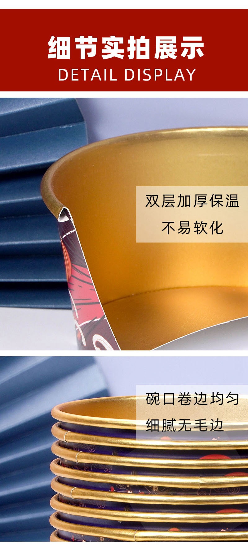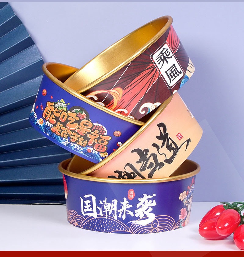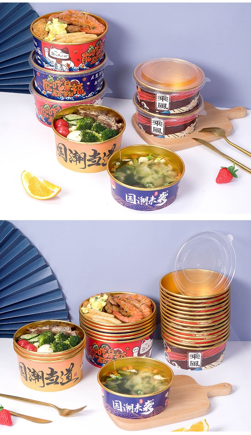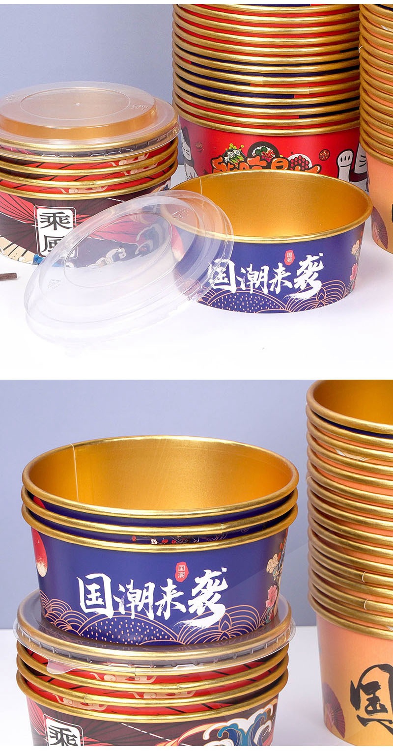 Одноразовая бумажная миска из золотой фольги, круглая утолщенная изолированная коробка для обеда, упаковочная коробка для легких закусок, острая лапша, индивидуальный логотип
