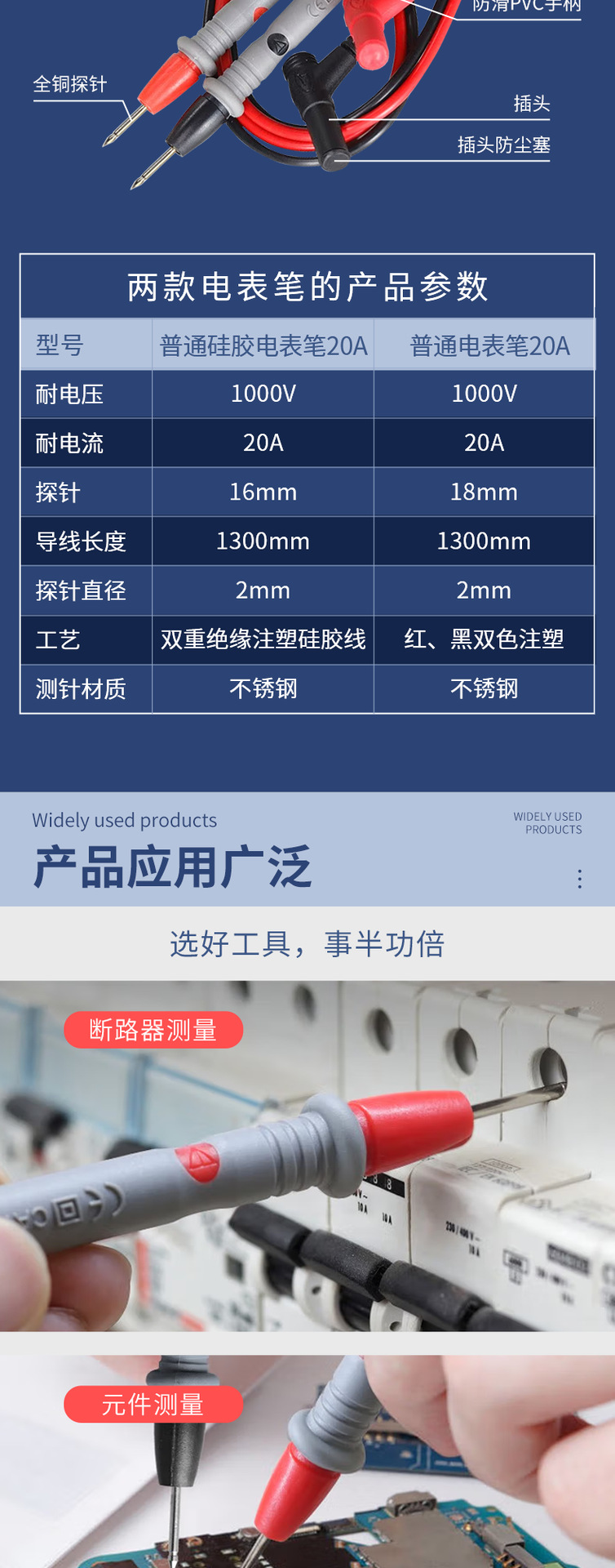Мультиметр, счетчик электроэнергии, ручка 20 А/1000 В, заостренный универсальный цифровой мультиметр, тестовая ручка, тестовая ручка, игла