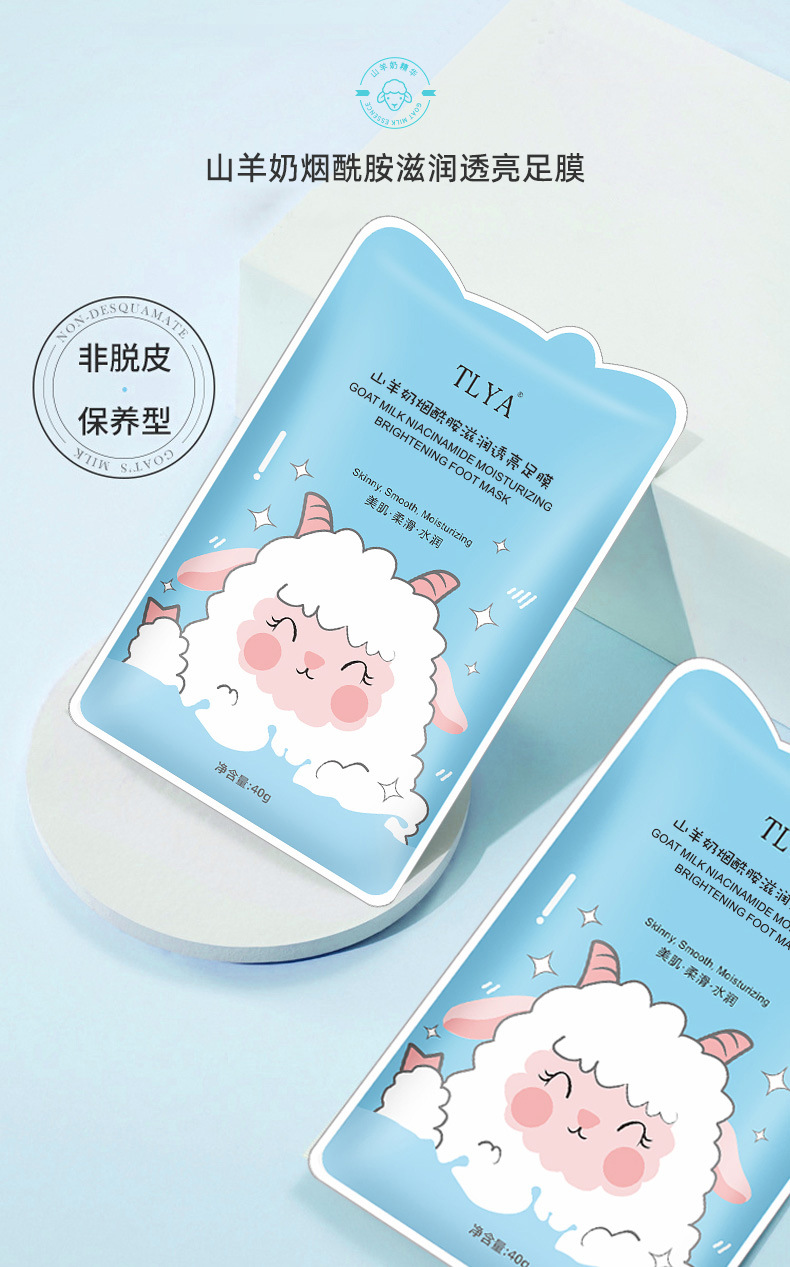 Маска для ног TLYA с ниацинамидом: увлажняющая, отбеливающая, питающая, отшелушивающая, одноразовая, с козьим молоком.