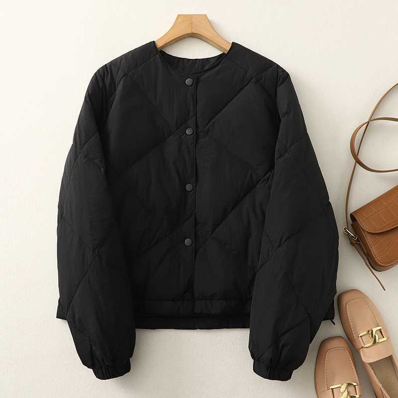 Настоящий выстрел в наличии, хорошее качество, высококачественный серый ромб, короткое пуховое пальто с хлопковой подкладкой, хлебное пальто, подходящее ко всему пальто