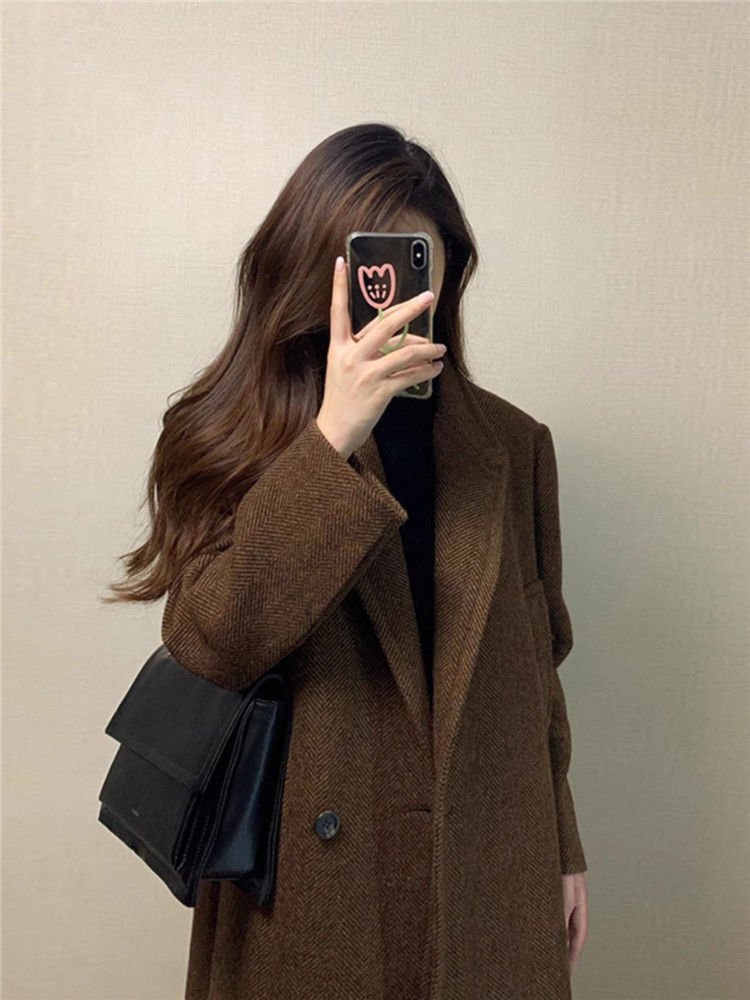 Корейская версия костюмированная воротник высокого уровня шерстяное пальто женская осень-зима 2023 новая длинная шерстяная куртка
