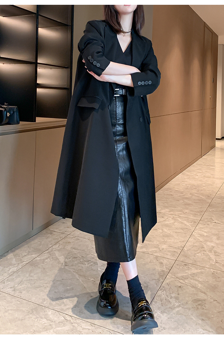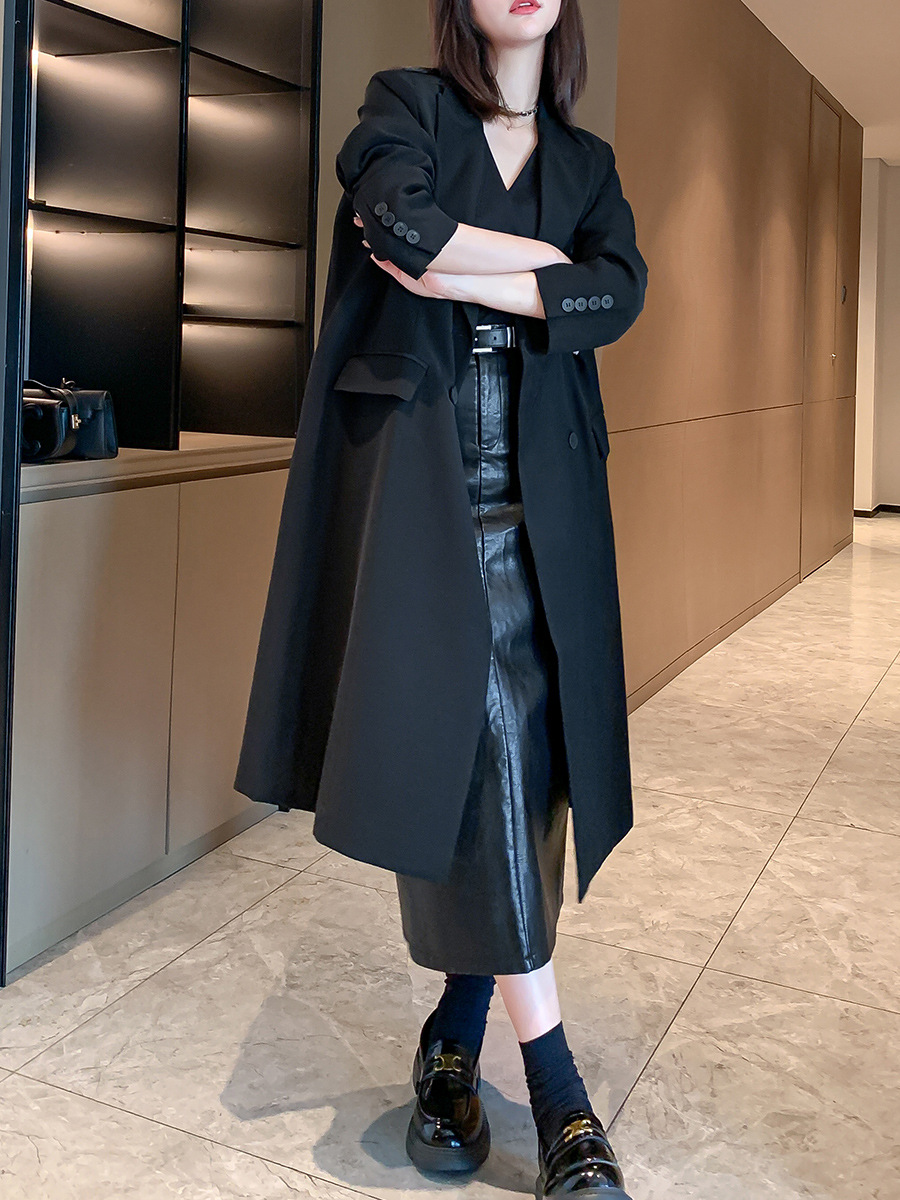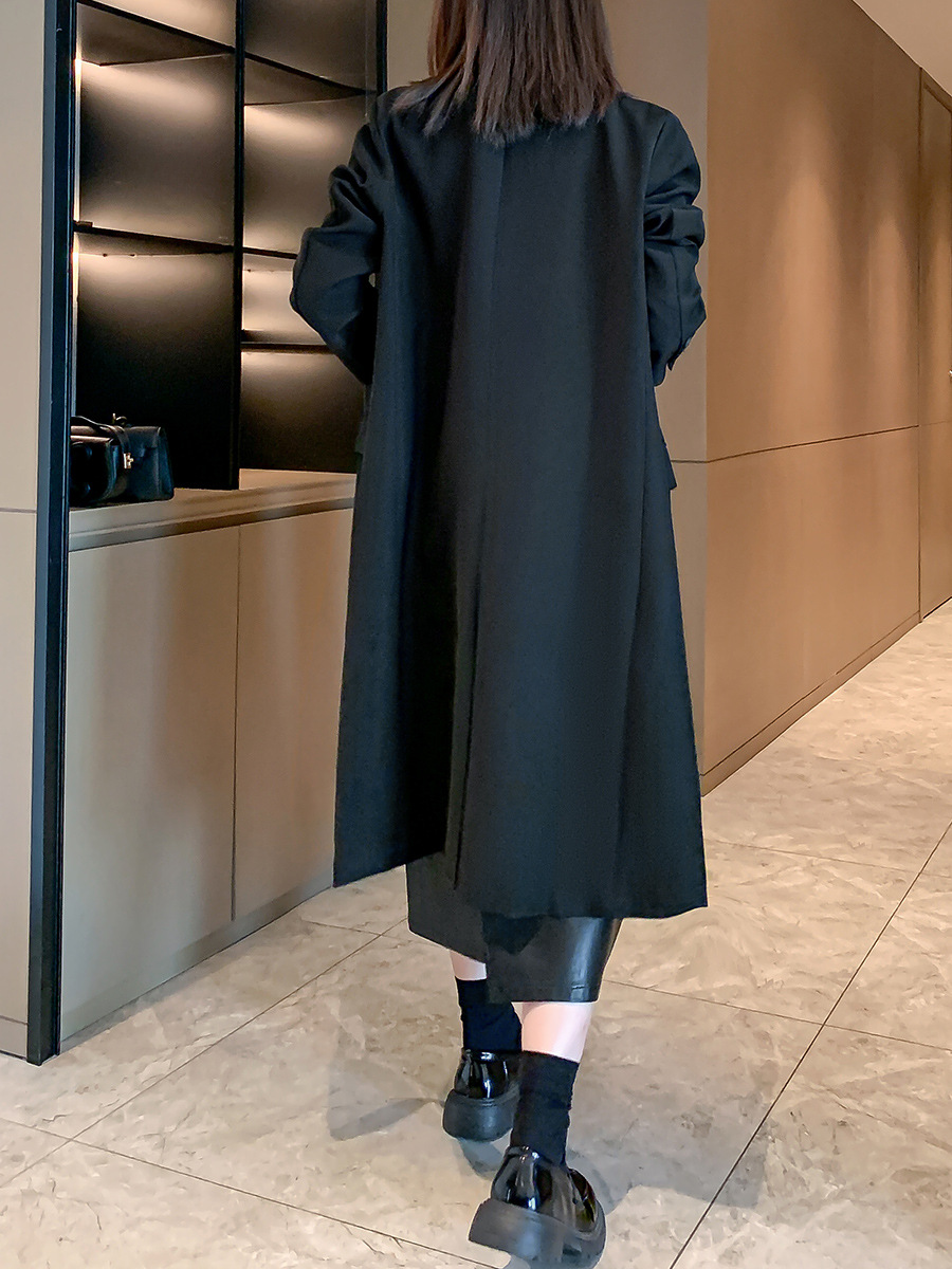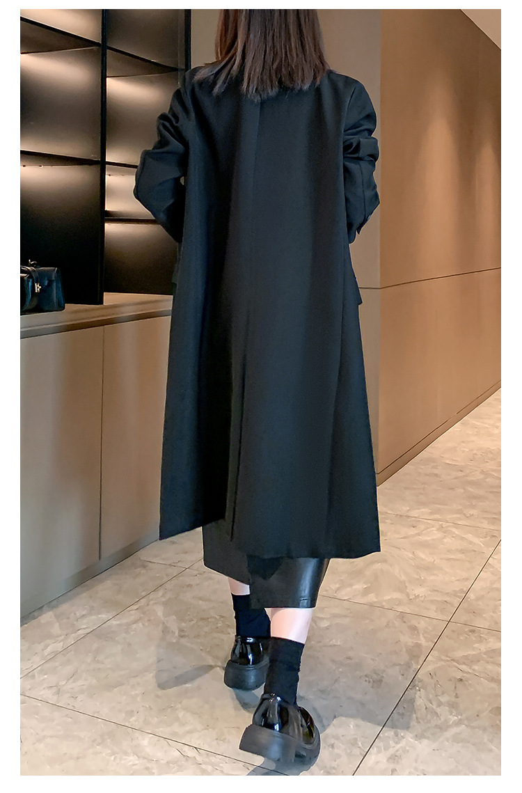 2024 Весна и Осень Новый длинный пиджак больших размеров для женщин, свободная Повседневная ветровка выше колена с драпировкой для пухленьких девочек 92190