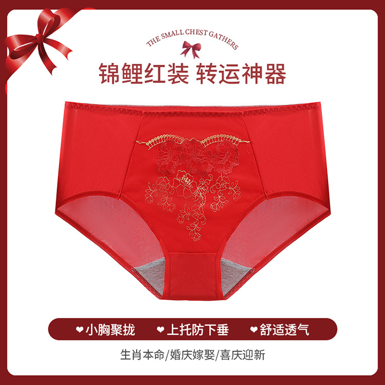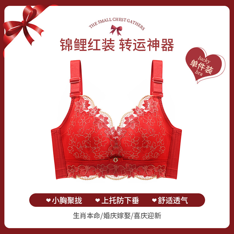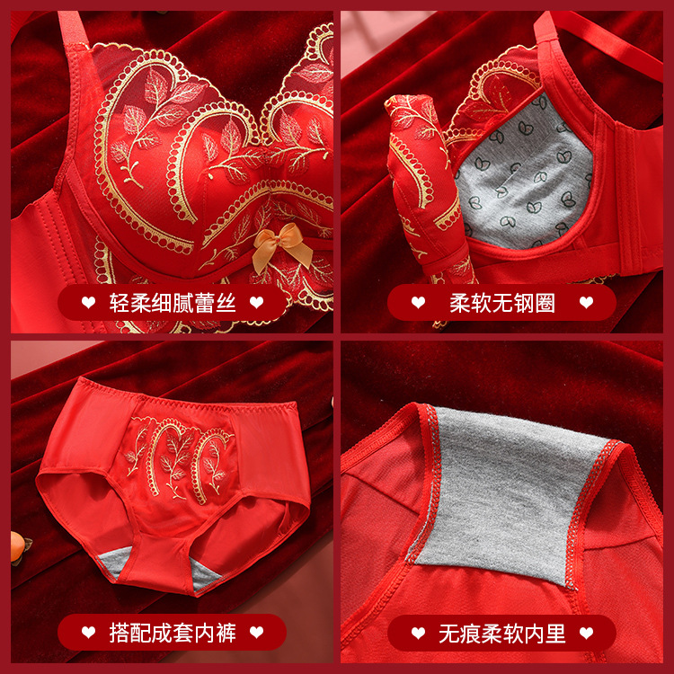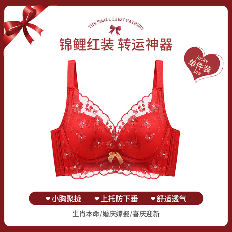 2024 новый красный нижнее белье костюм год рождения Свадьба невесты с маленькой грудью пуш-ап Регулируемый беспроводной бюстгальтер