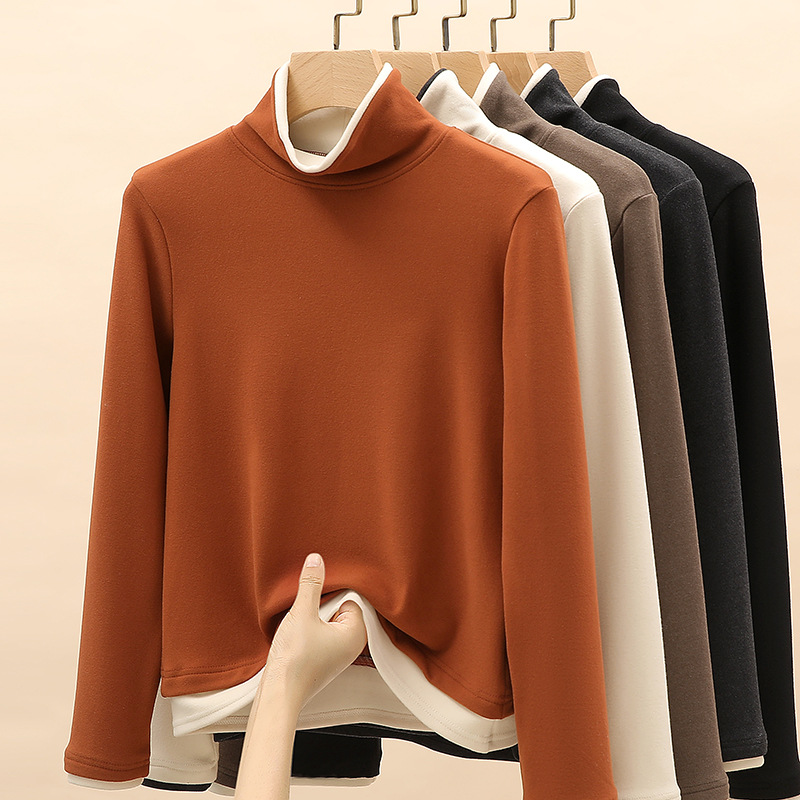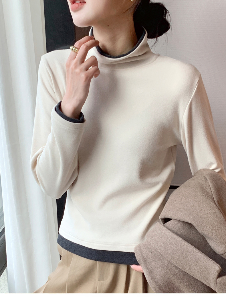 H236 новые весенне-осенние топы из двух частей, футболки с длинными рукавами, женские нижние рубашки, многослойные с высоким воротником контрастного цвета, внутренняя одежда