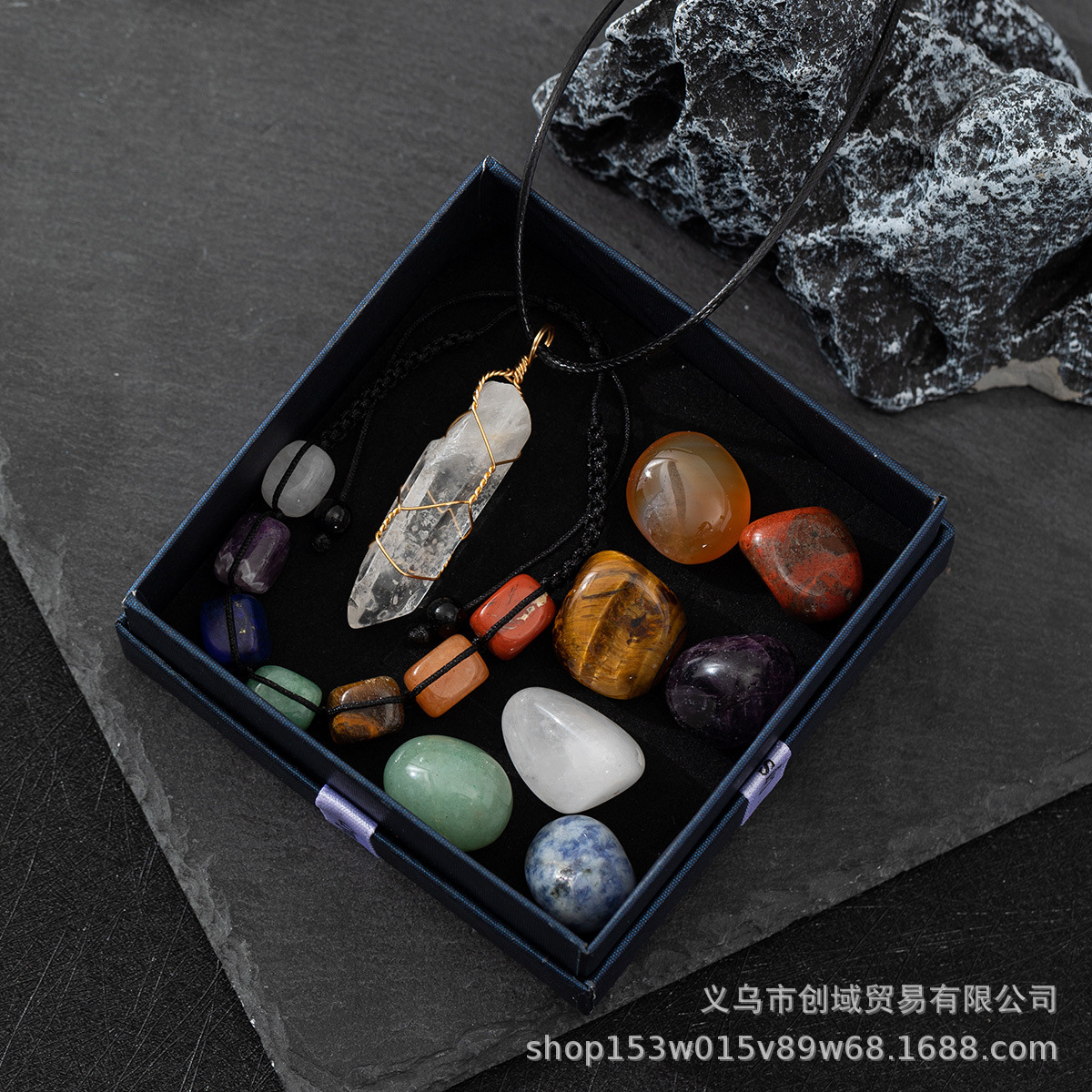 Подарочная коробка набора разноцветных каменных браслетов 9*9.