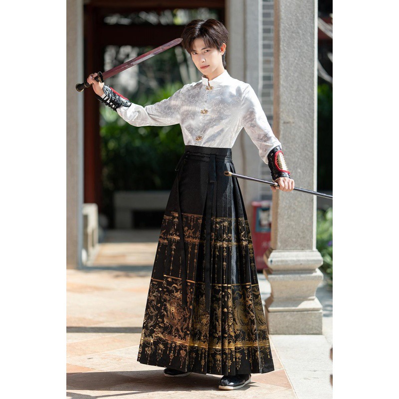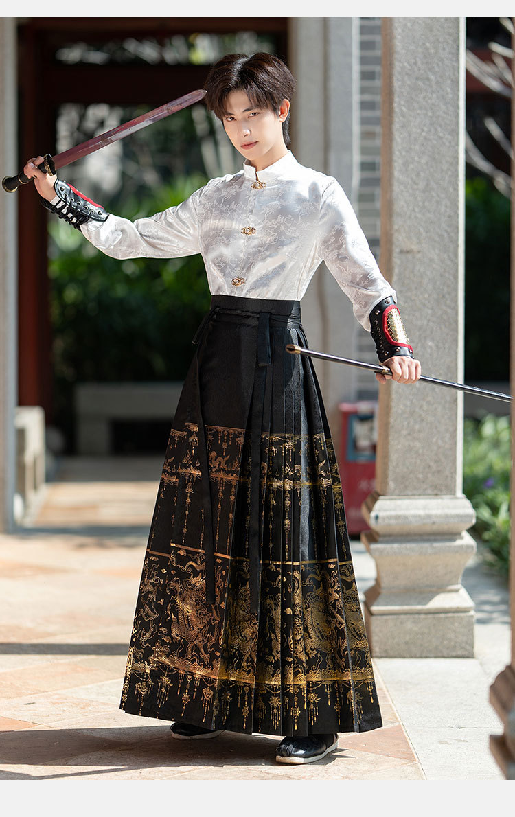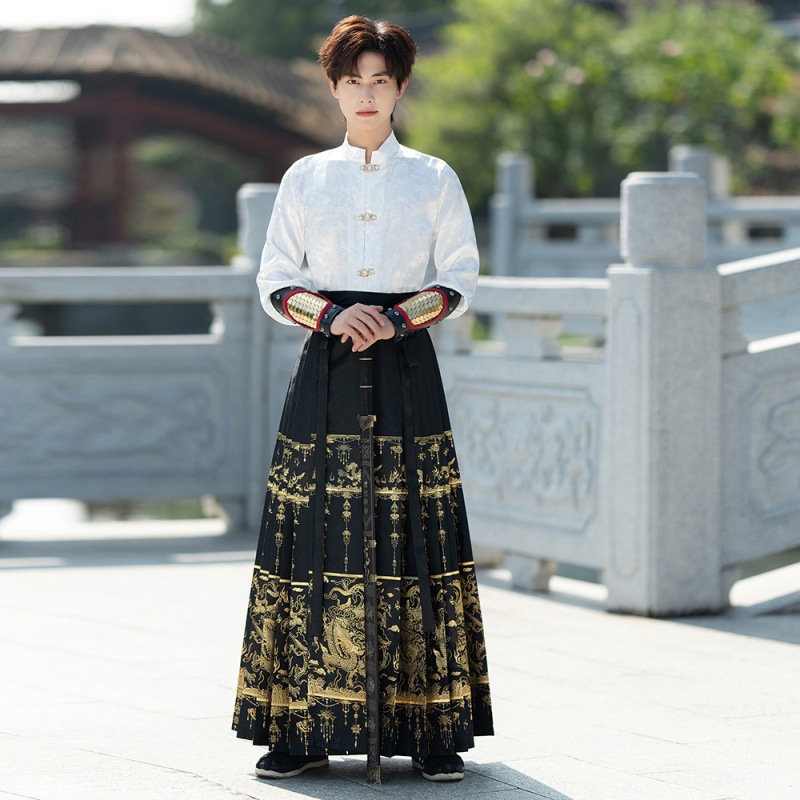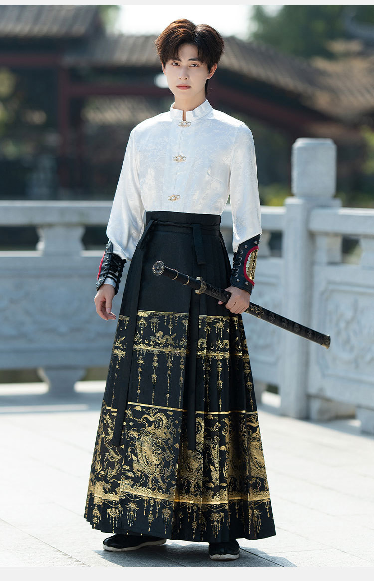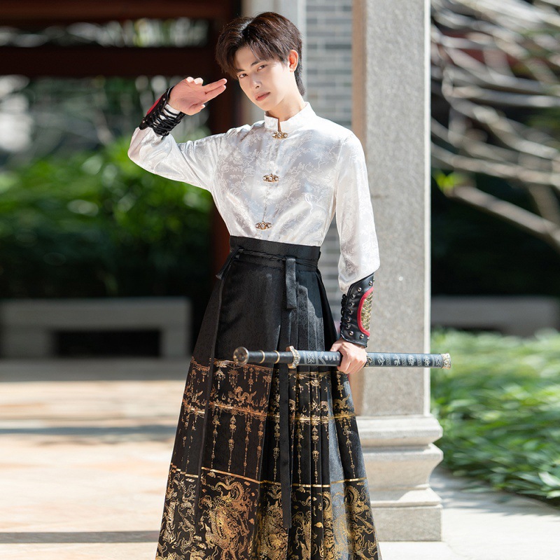 Яркое Тканое платье в китайском стиле с изображением золотого дракона, Новый китайский стиль ханьфу, Мужской и Женский, одинаковый древний стиль, костюм для мальчиков больших размеров, весна