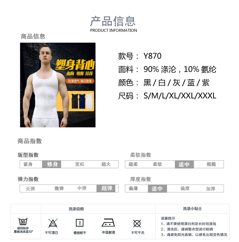 跨境升级版男士塑身衣 透气束胸收腹束型运动背心 内衣