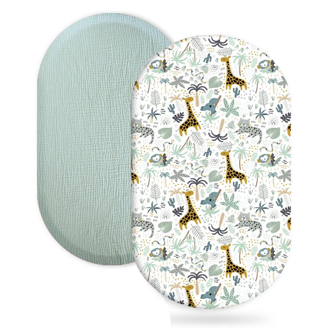 跨境婴儿摇篮床笠2件套Muslin透气棉纱摇篮床垫可拆卸换洗外罩