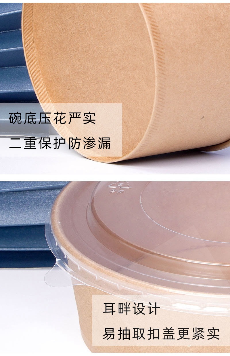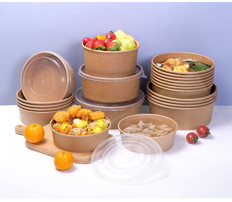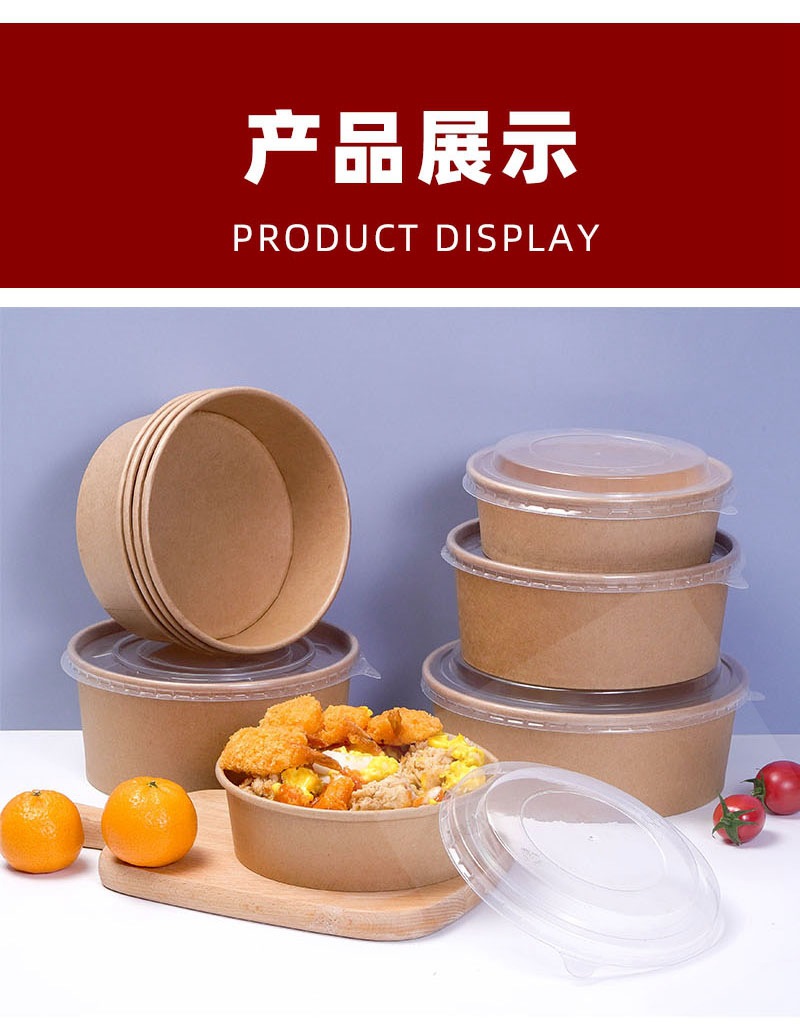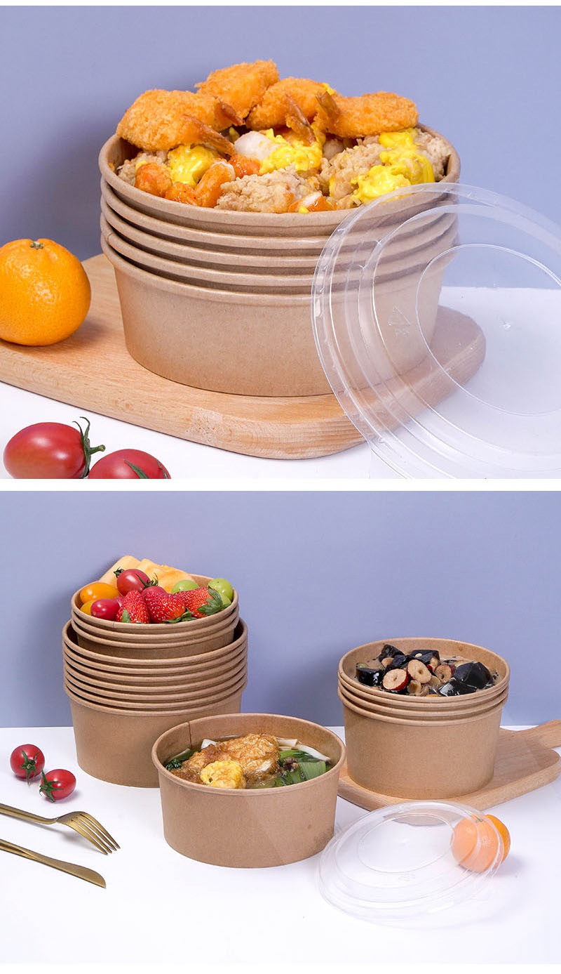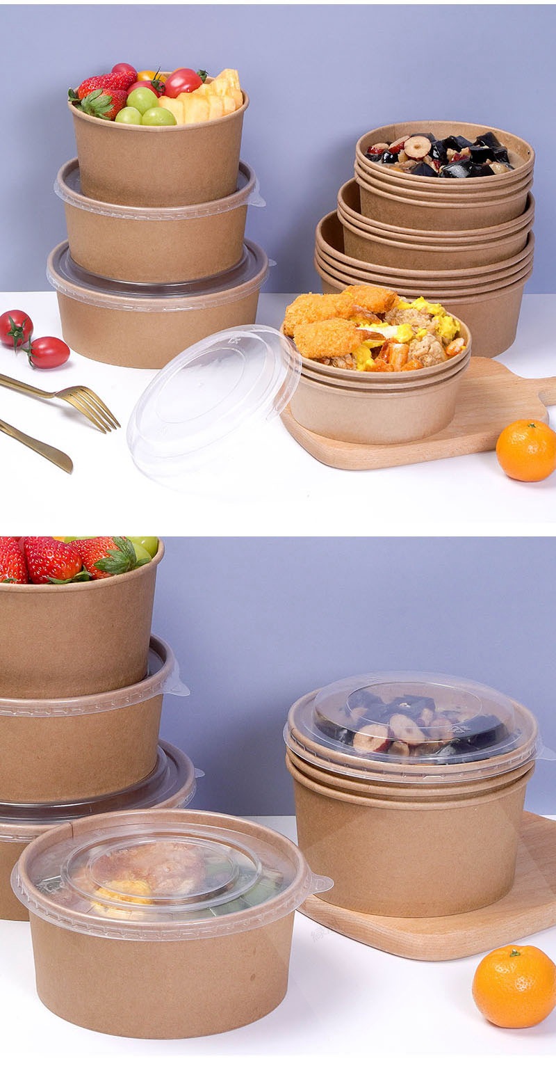 коричневая упаковочная коробка из упаковочной бумаги, круглая бумажная миска для обеда, индивидуальный логотип, утолщенная коробка для быстрого питания на вынос, бумажная миска для фруктового салата