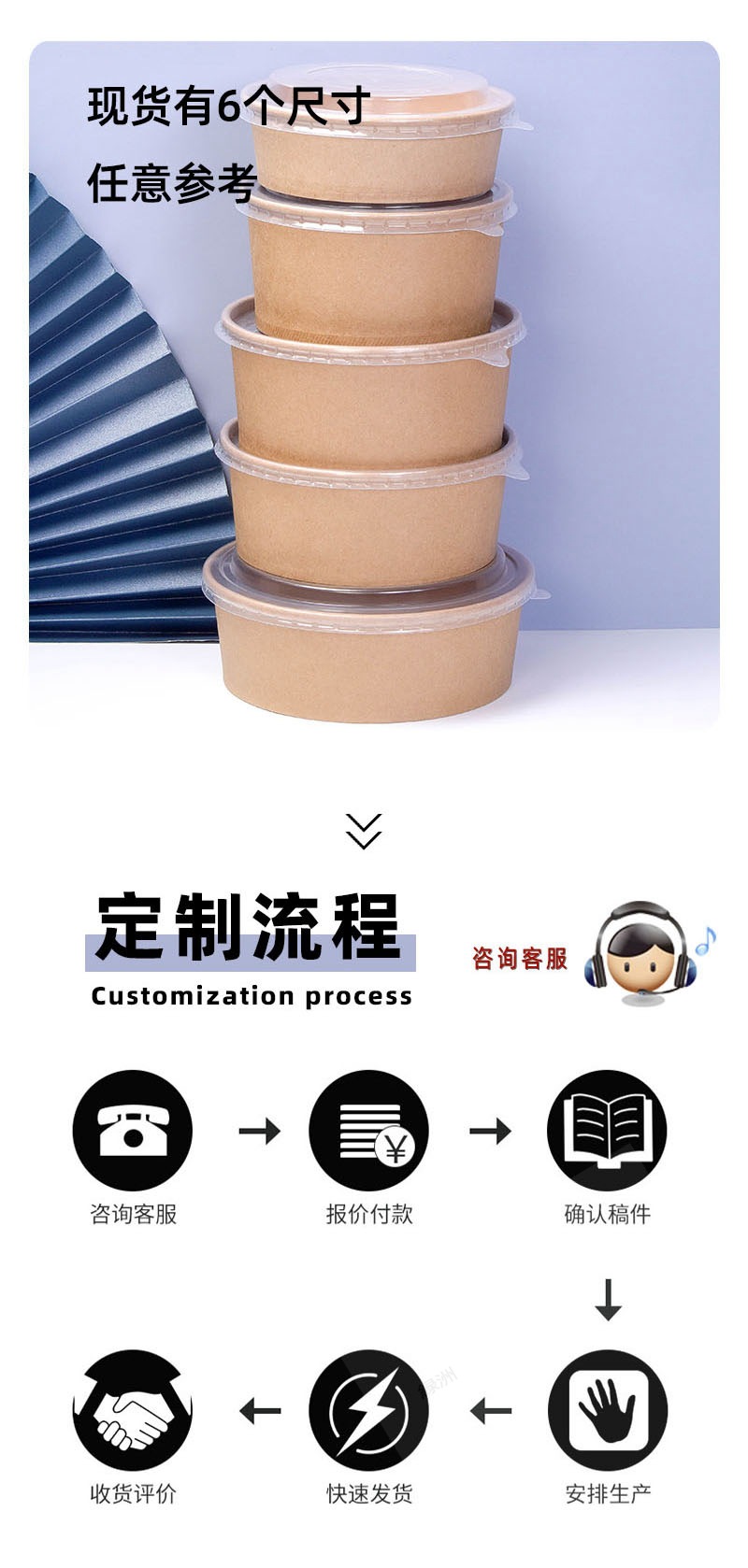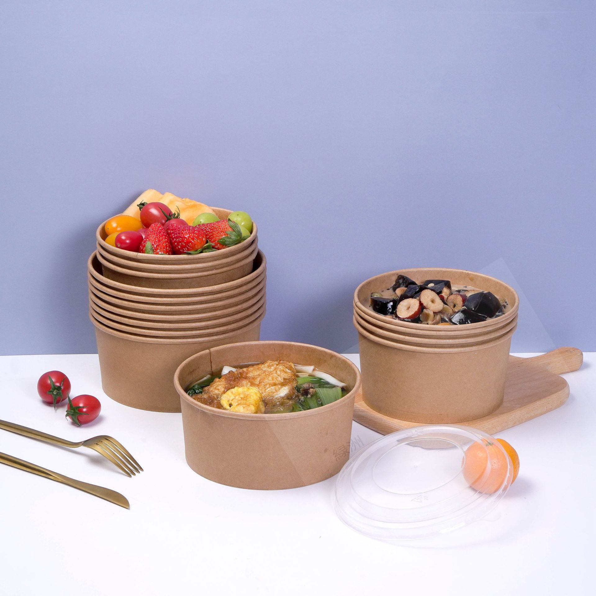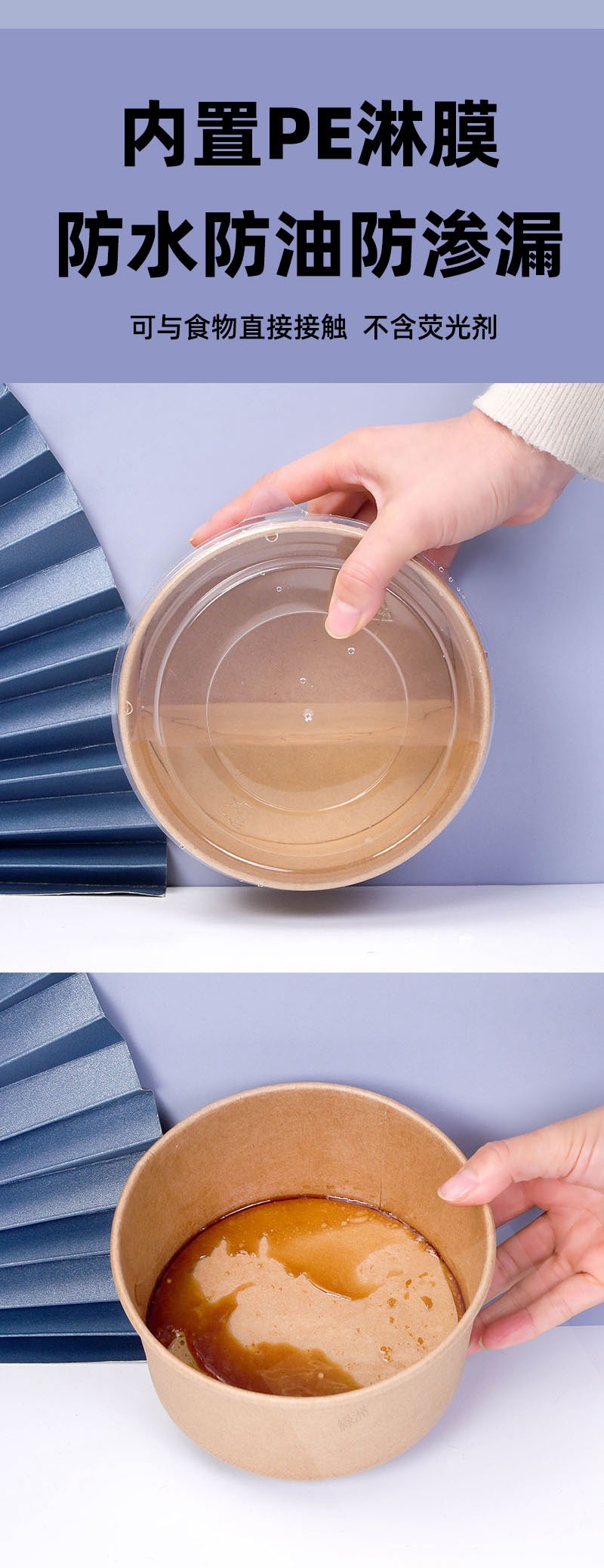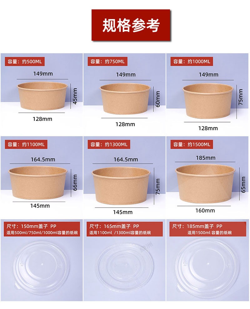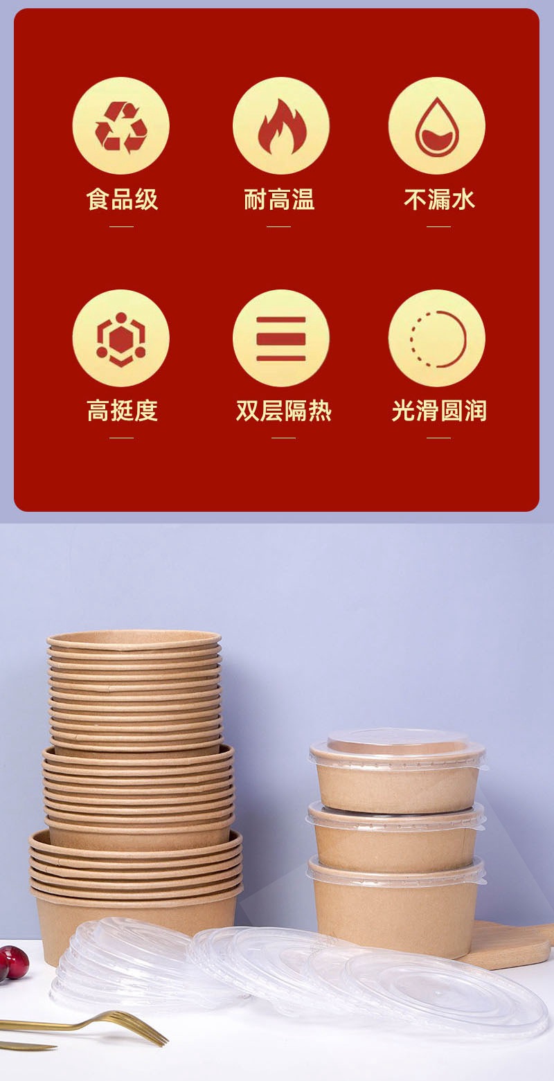 коричневая упаковочная коробка из упаковочной бумаги, круглая бумажная миска для обеда, индивидуальный логотип, утолщенная коробка для быстрого питания на вынос, бумажная миска для фруктового салата