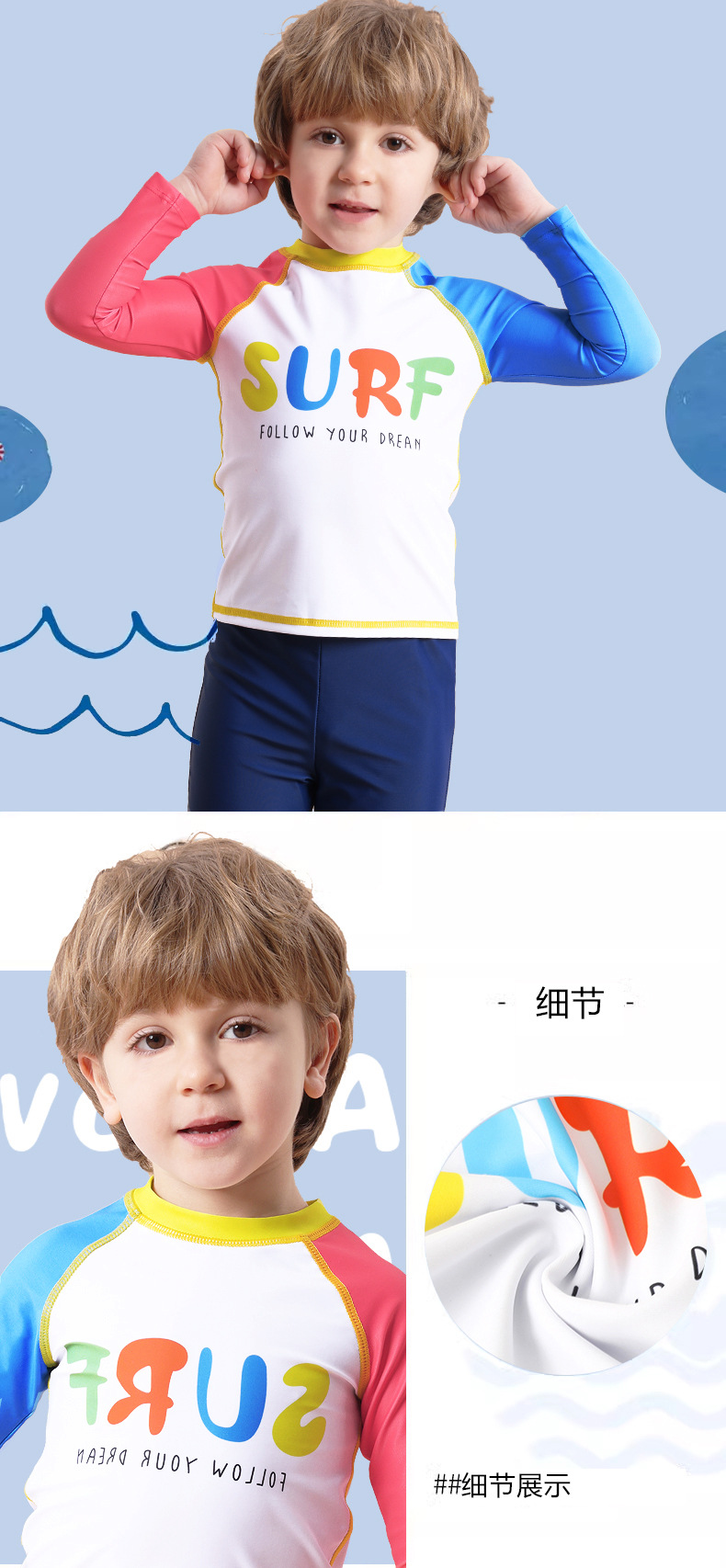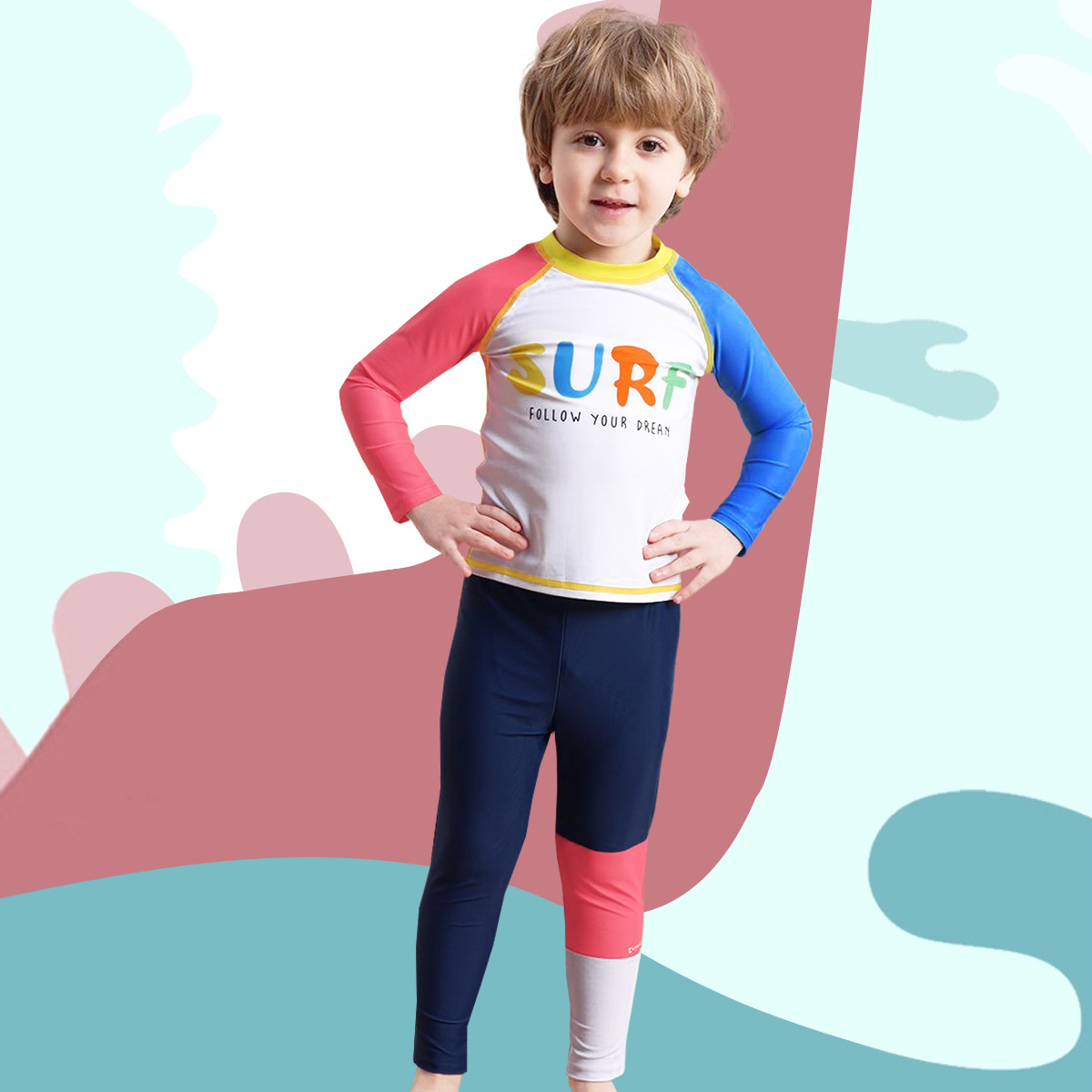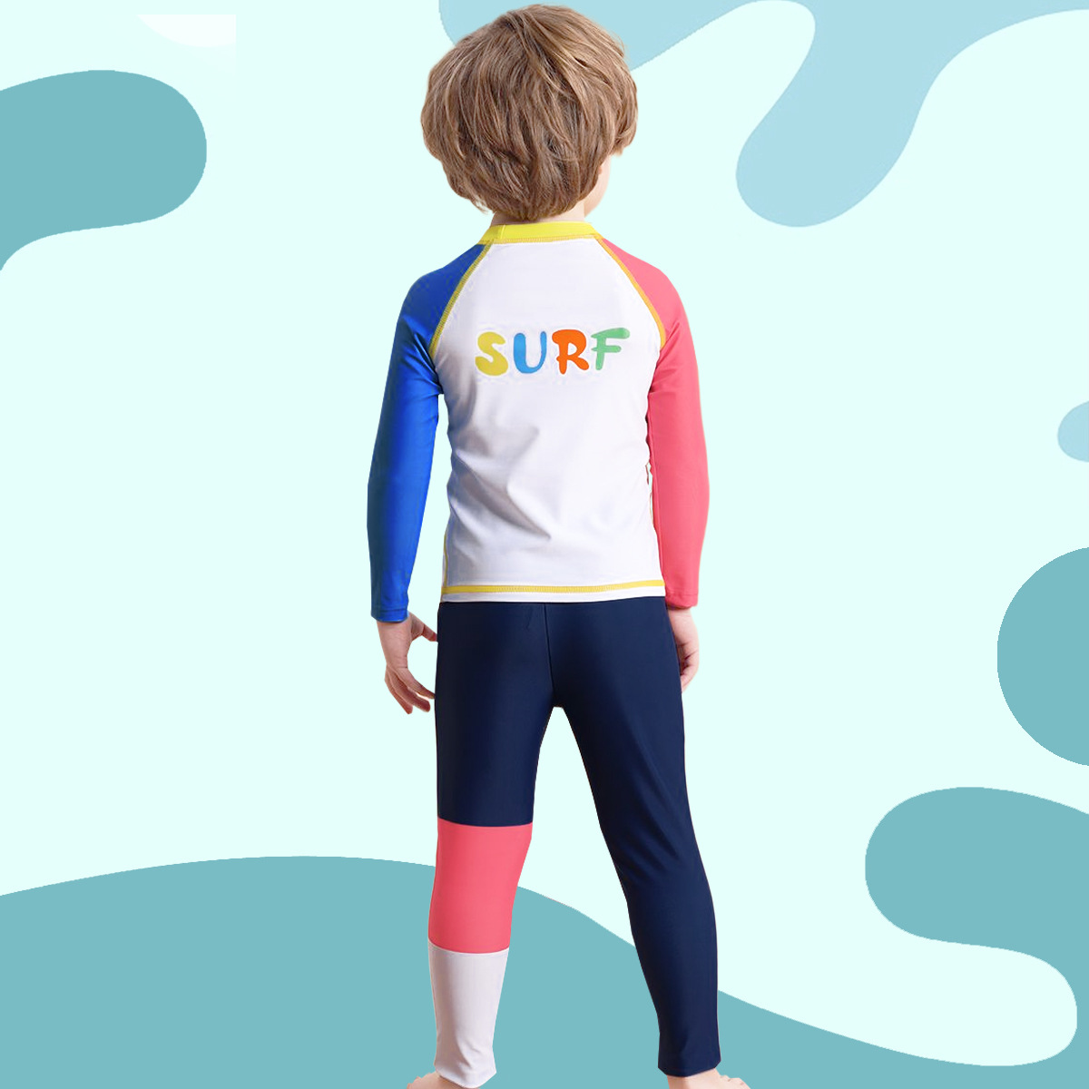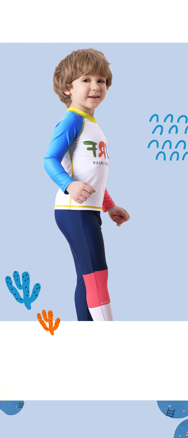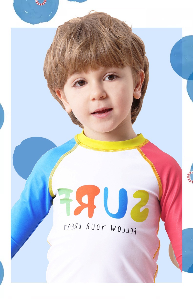 Детский купальник, купальник с длинными рукавами для мальчиков, новинка 2025 года, длинные штаны с буквенным принтом, солнцезащитный купальник для мальчиков, летняя одежда для плавания