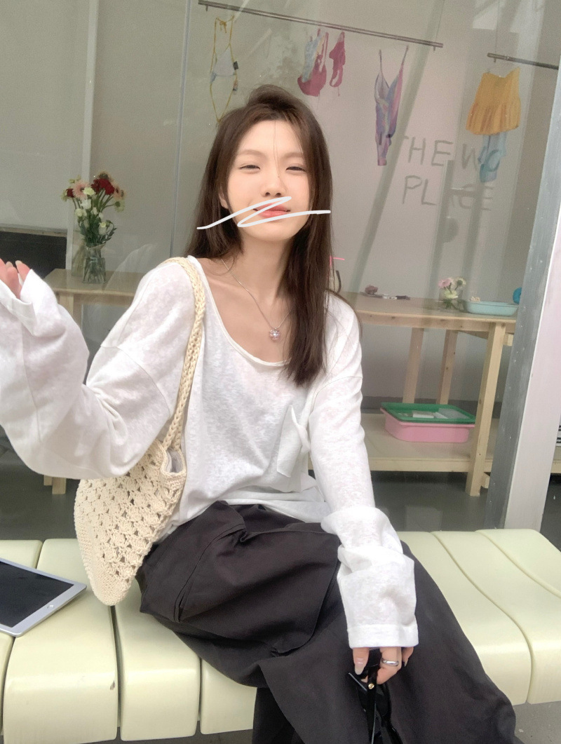Белая тонкая Солнцезащитная блузка, футболка с длинными рукавами, женская летняя танцевальная майка в ленивом стиле, Свободный Топ