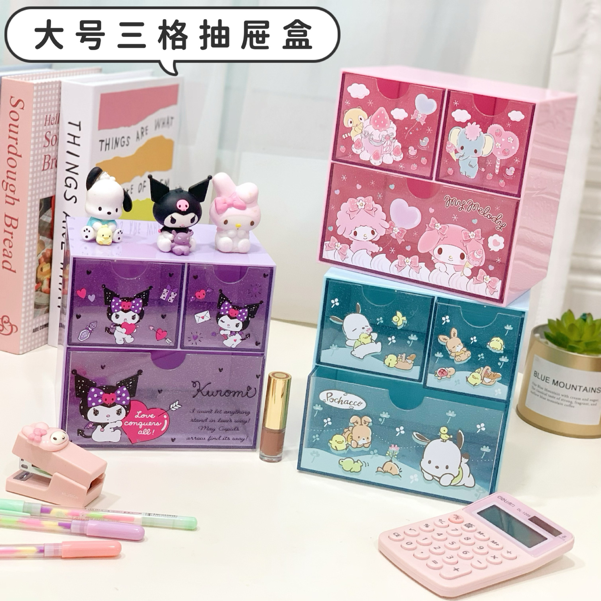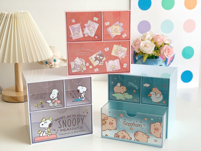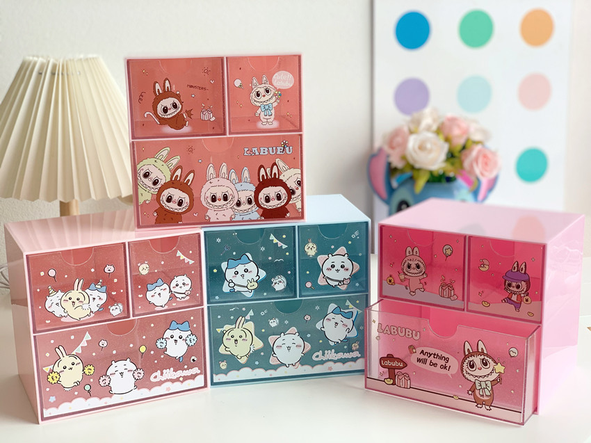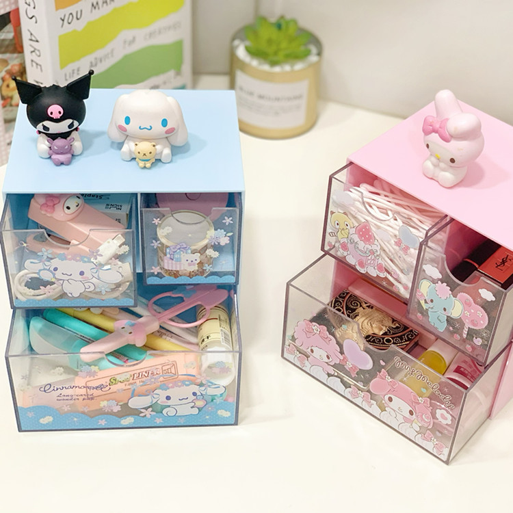 Ins стиль девушка сердце куломи Настольный ящик большой блеск прозрачный ящик для хранения трехсеточная классификационная Органайзер