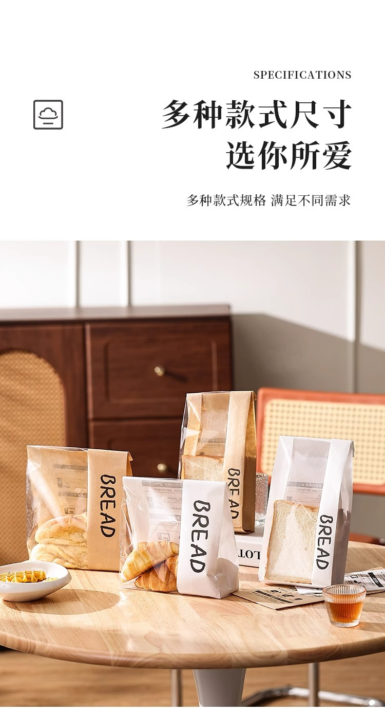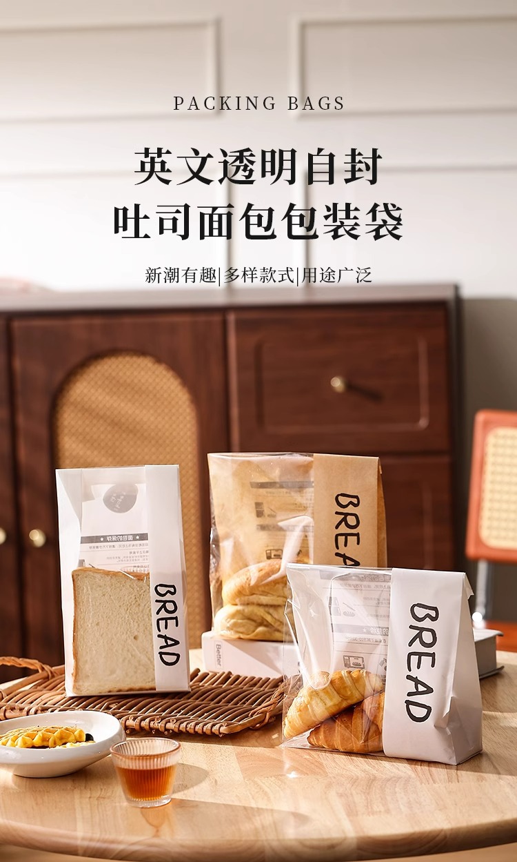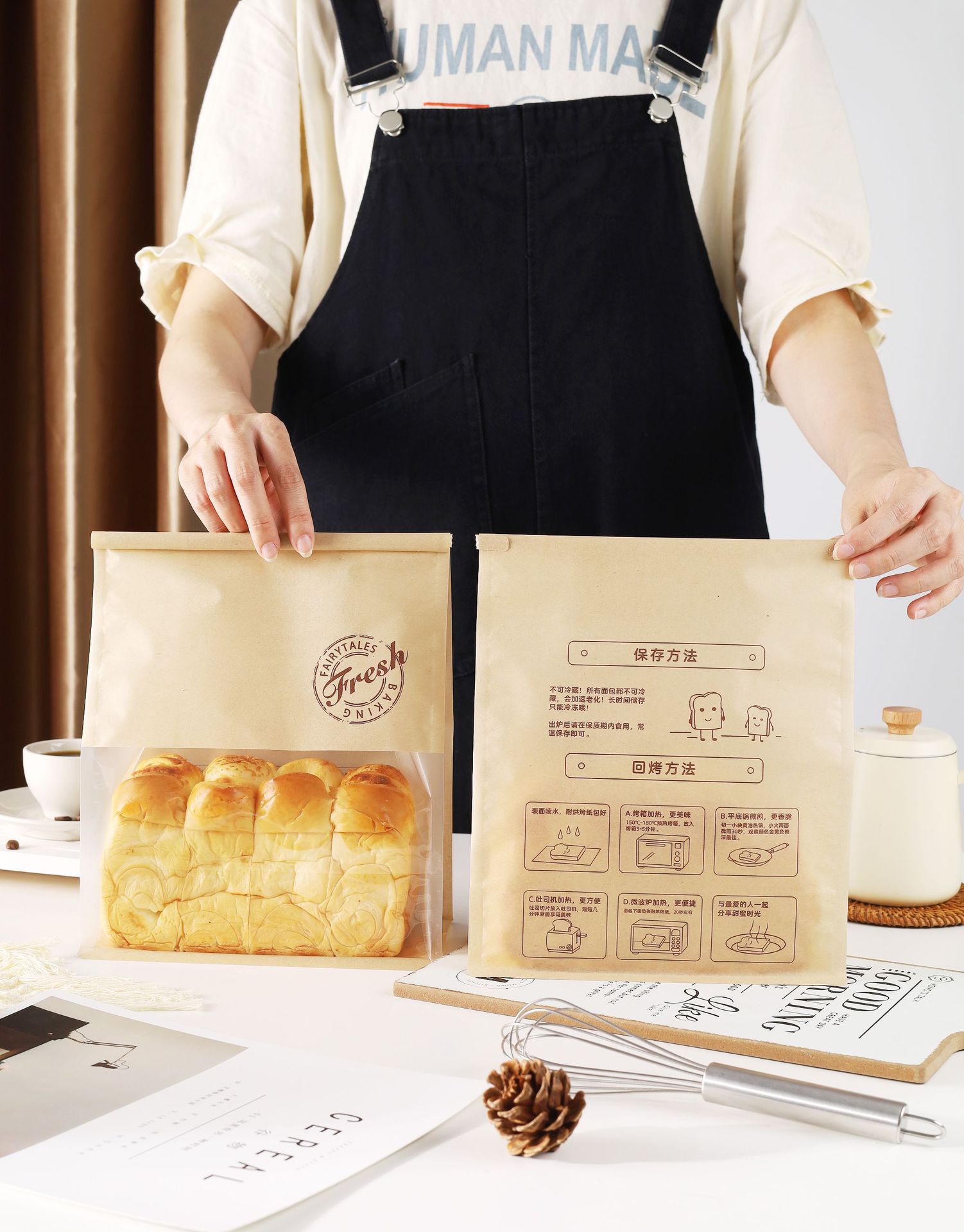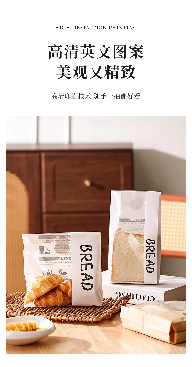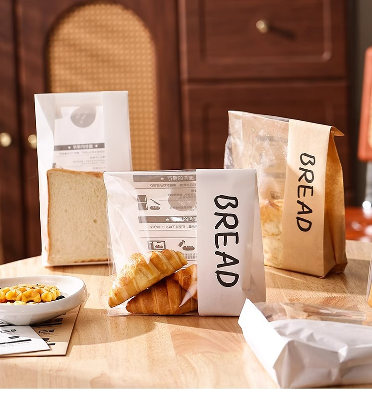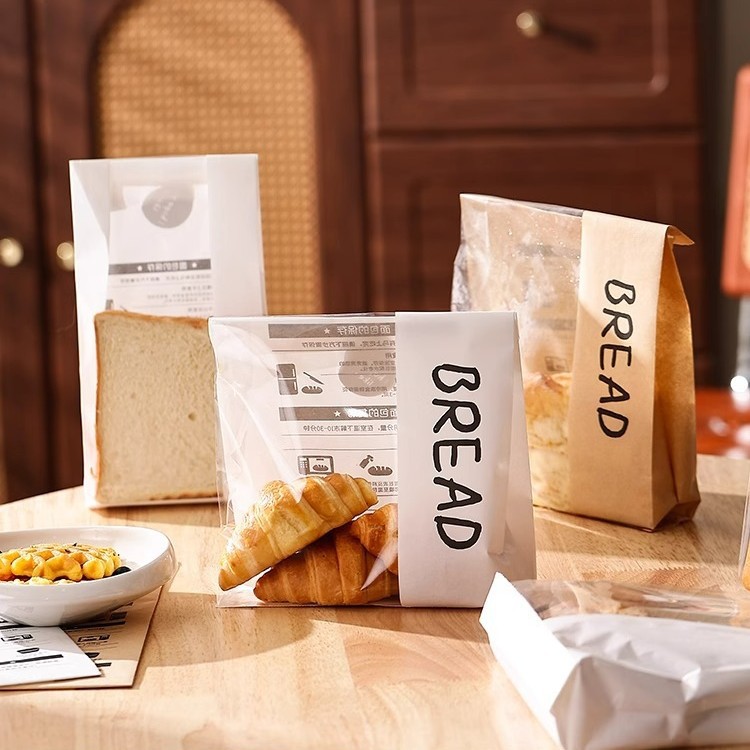Прозрачный пакет для хлеба, пакет для багетов, мягкий пакет для европейского хлеба, пакет для циабатты, самозаклеивающийся пакет, пакет из крафт-бумаги с окном