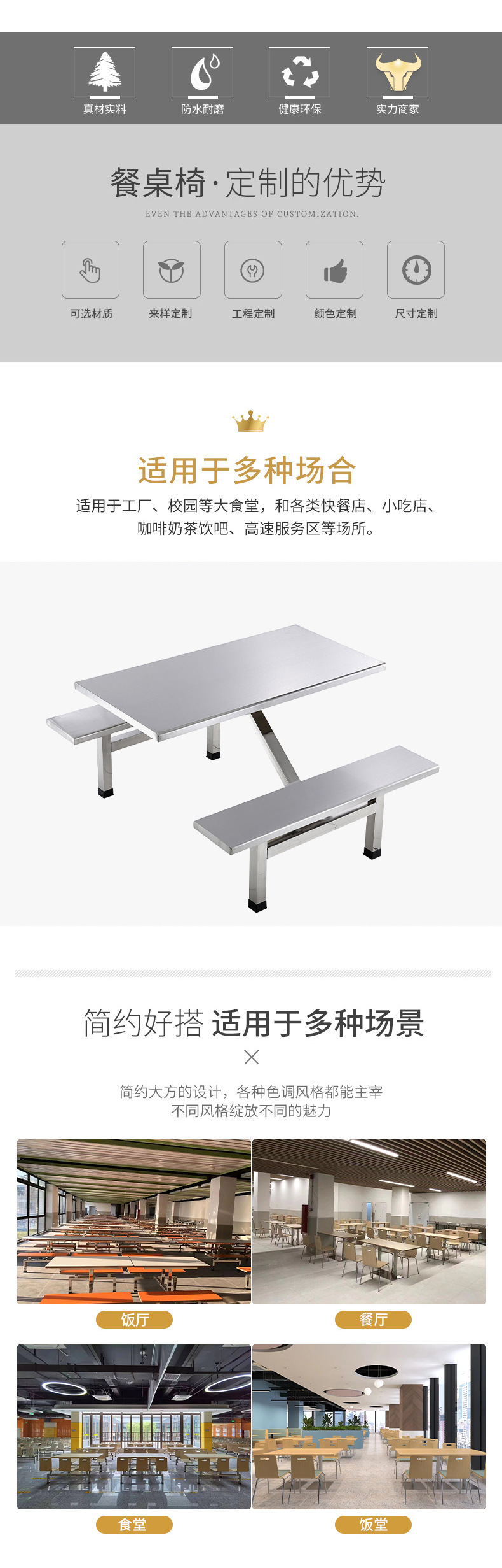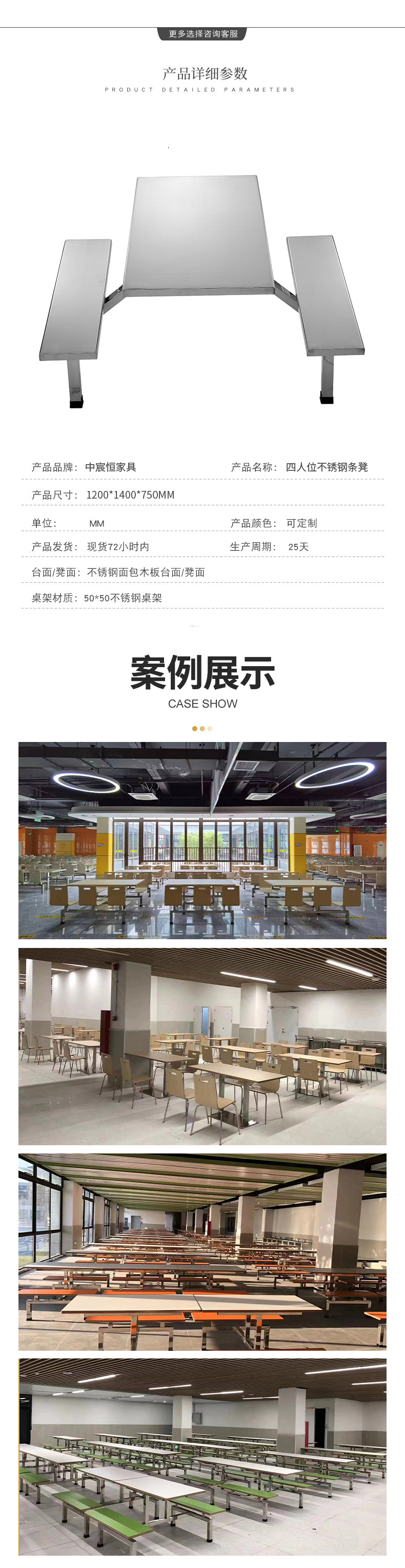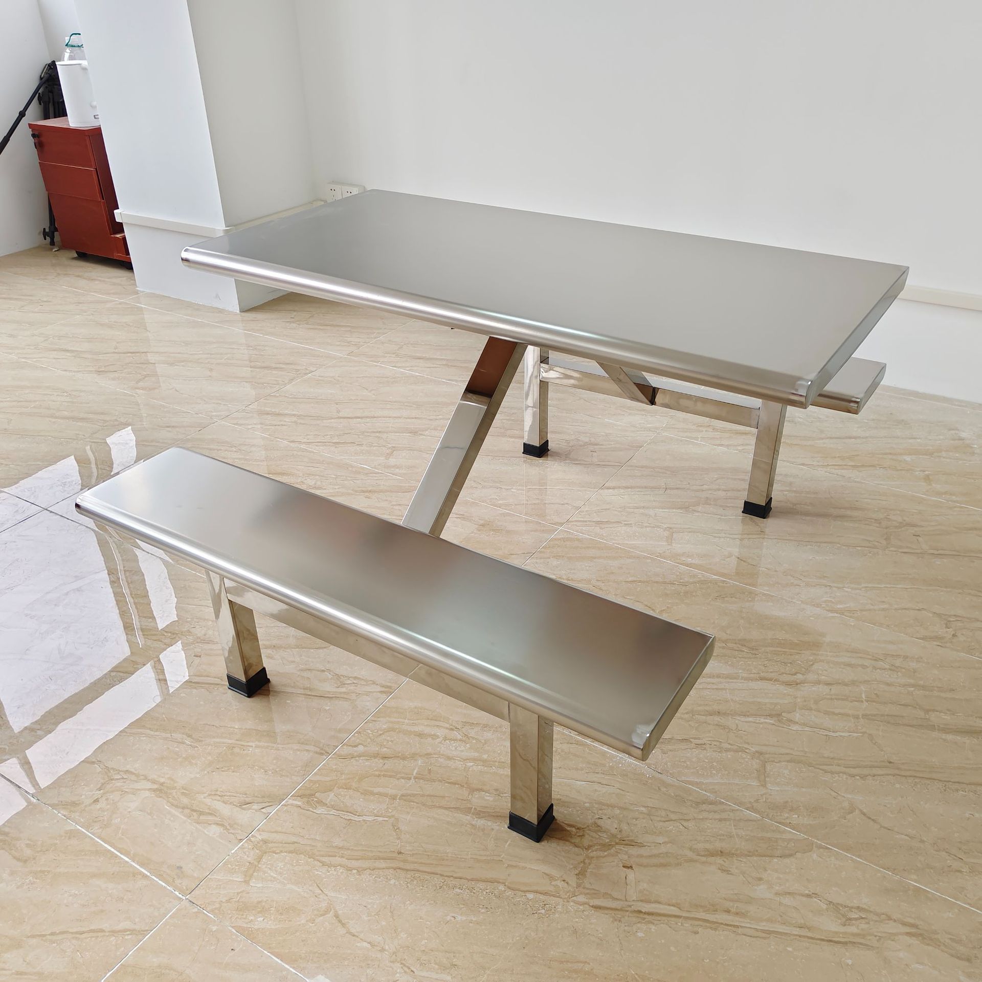 Школьная цельная столовая из нержавеющей стали, обеденный стол и комбинация стула, столовая для персонала компании, 4-местная Скамья из нержавеющей стали