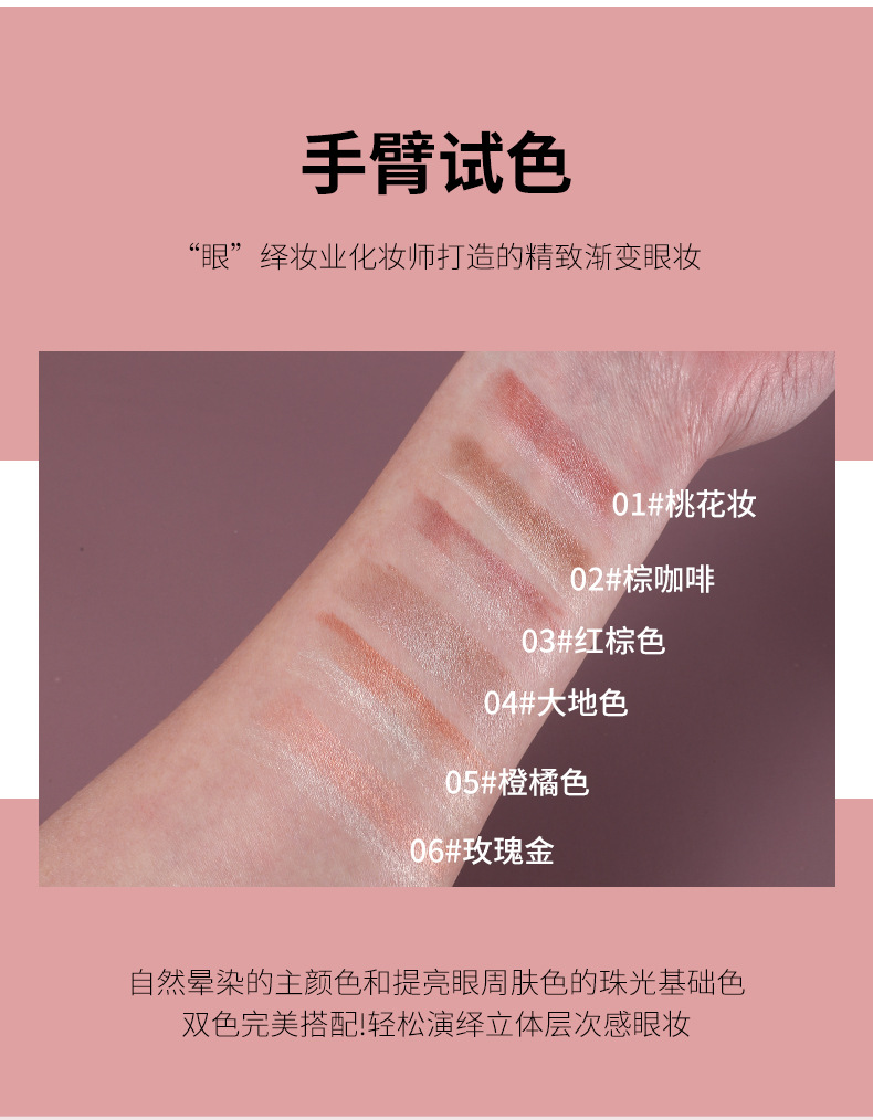 01 # макияж цветения персика; 02 # коричневый кофе; 03 # красновато-коричневый; 04 # цвет земли; 05 # оранжевый; 06 # розовое золото