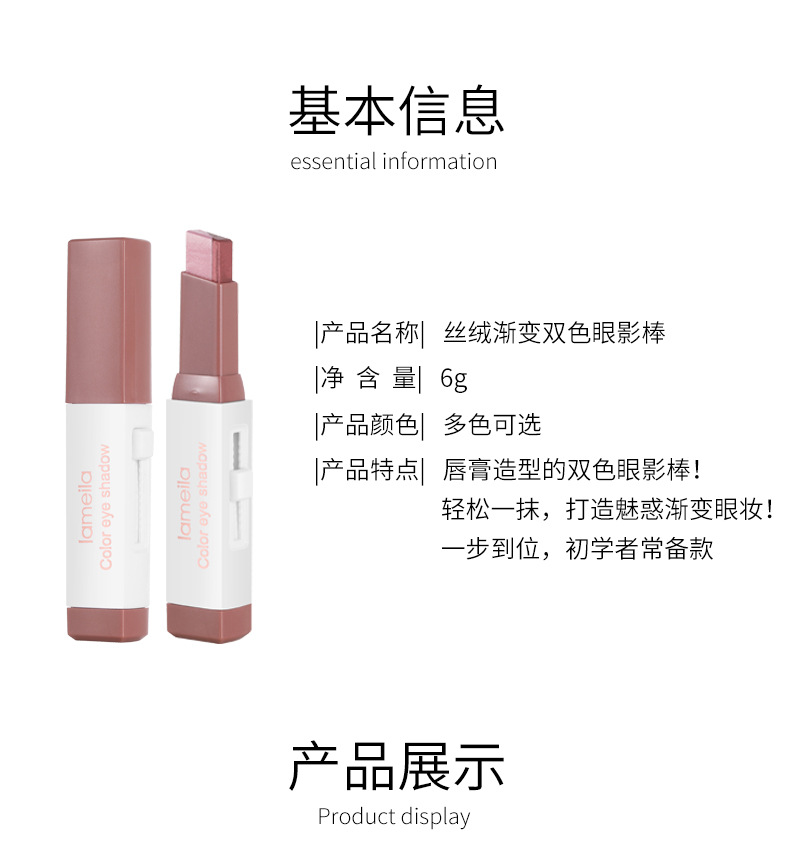 Ramila поворотный бархатный градиент двухцветные тени для век, палочка двухцветного градиента, нелегко размазывает модифицированную ручку для теней для век