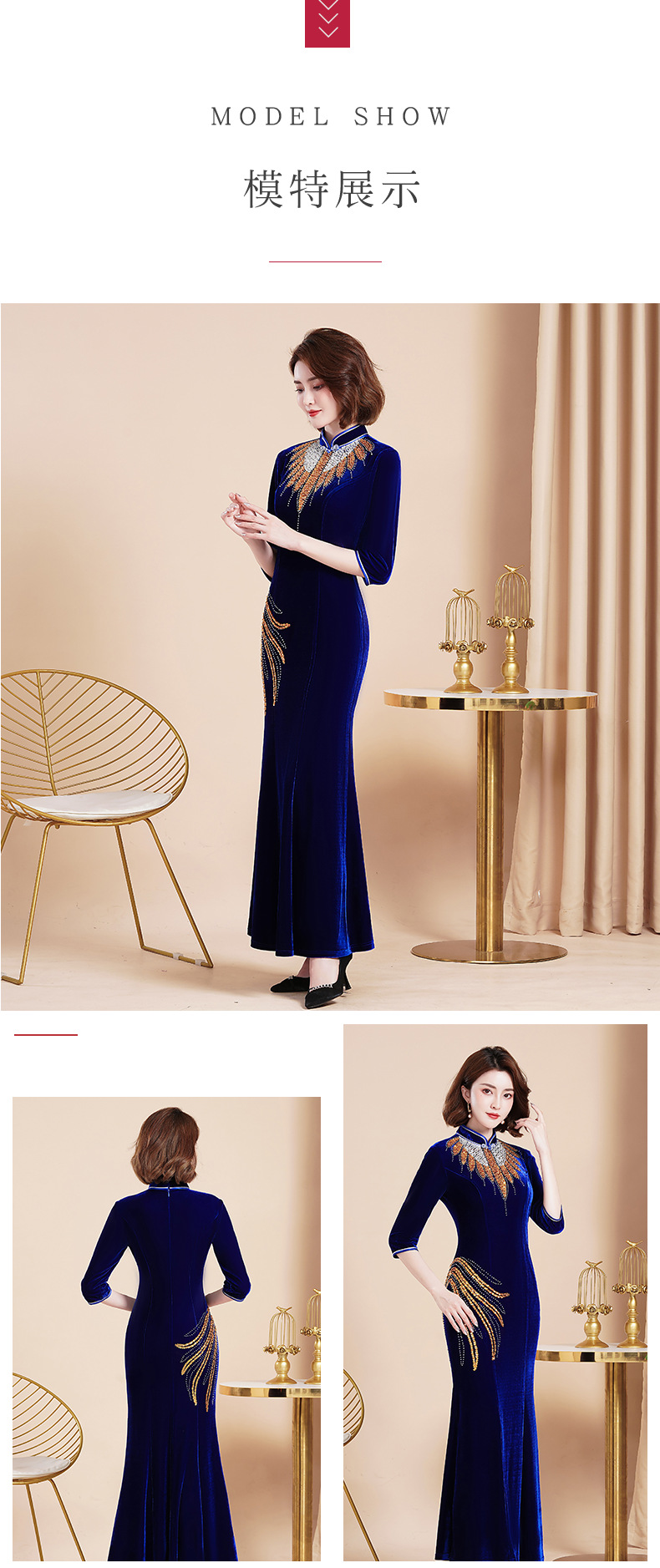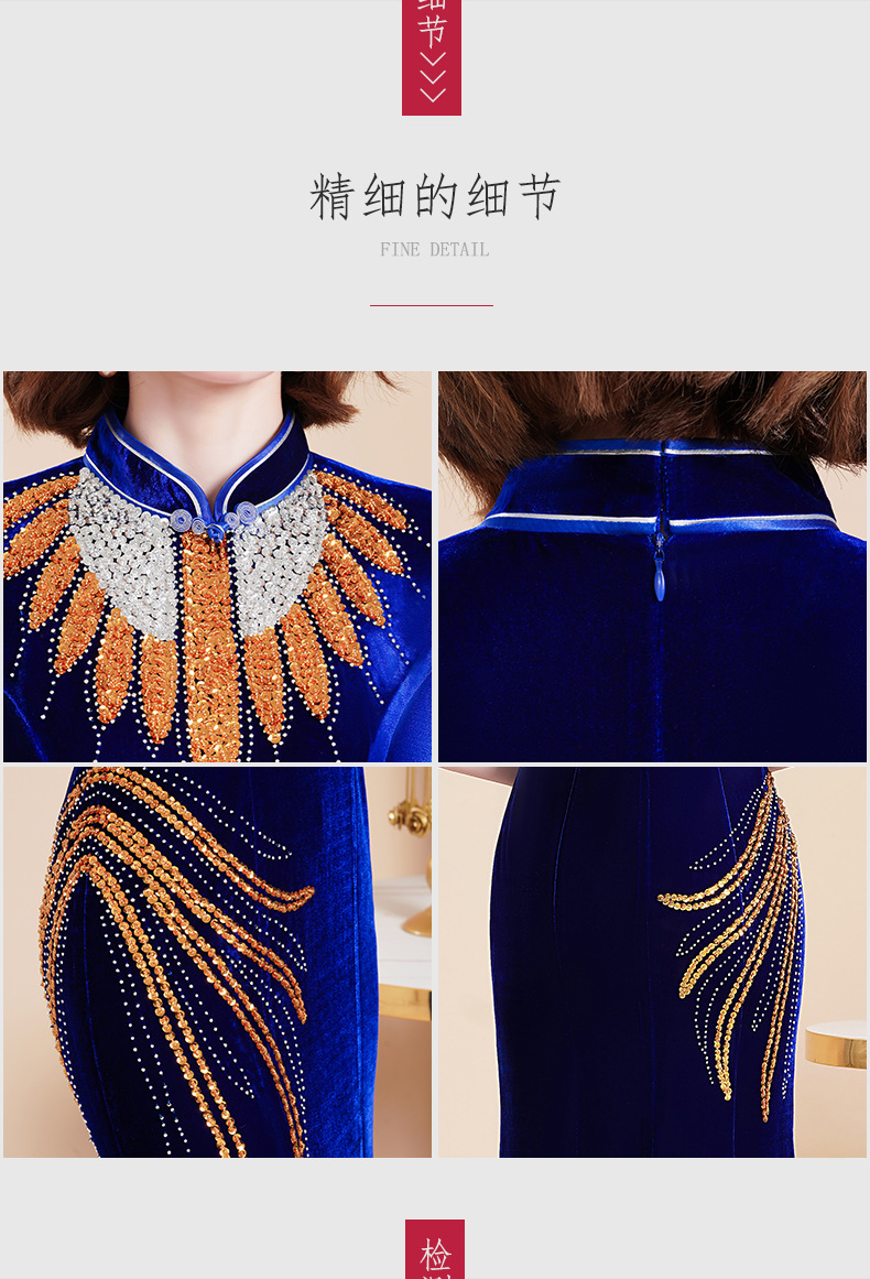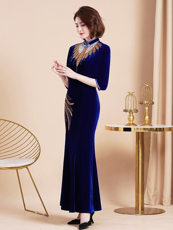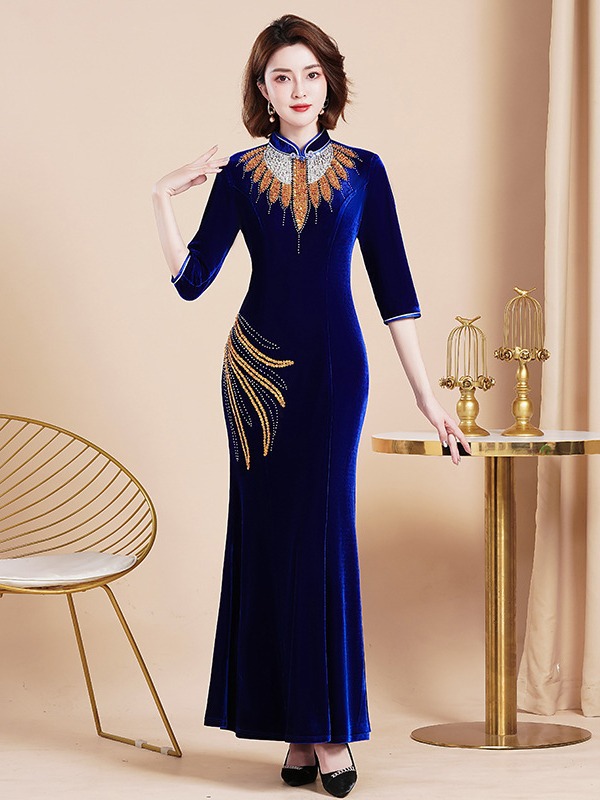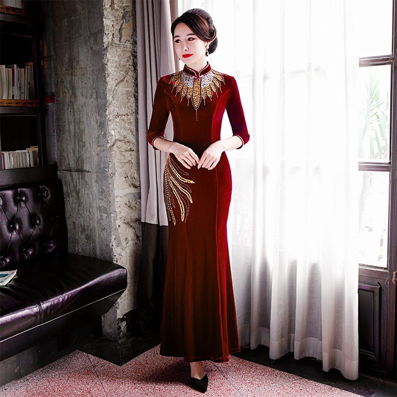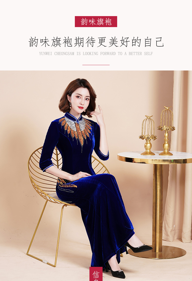 Банкетный Золотой бархатный Чонсам улучшенное платье рыбий хвост благородное длинное платье сценический костюм для подиума Длинный Элегантный