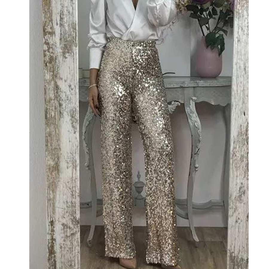 Внешняя торговля 2024 Европейские и американские весенне-летние Новые Вечерние расклешенные брюки с блестками INS повседневные узкие эластичные многоцветные расклешенные брюки