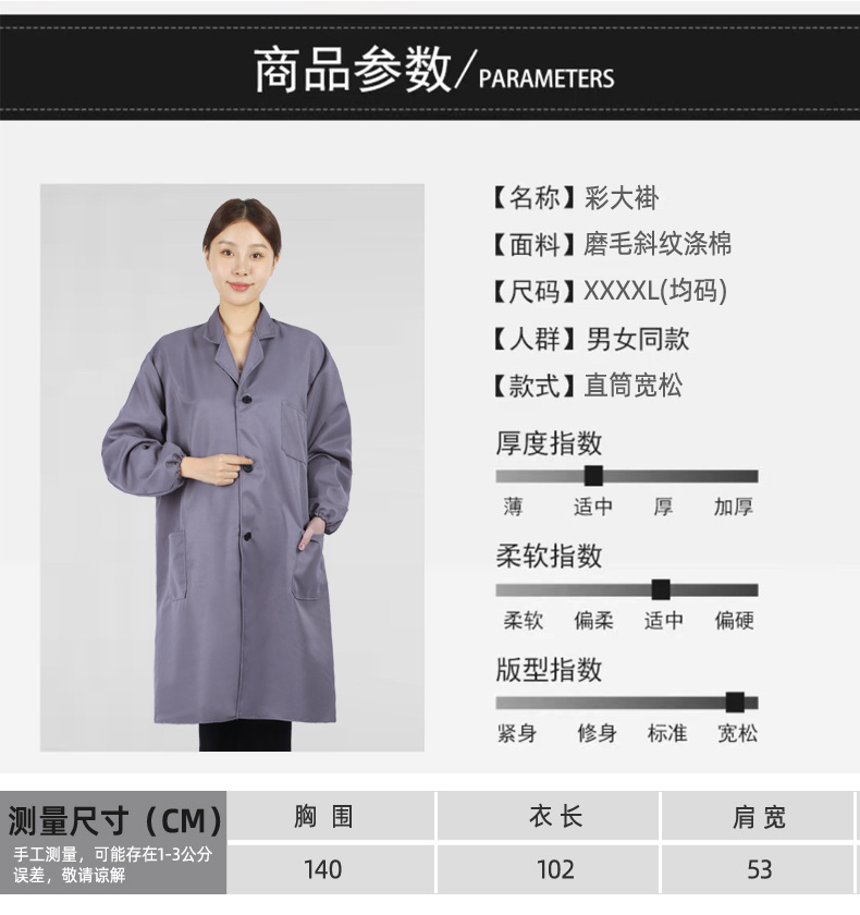 温馨提醒:本款罩衣尺寸均码,衣领领口标随机可能是3XL或者4XL,但是具体尺寸是一样的。具体尺寸请参考上面尺寸表,请知悉。