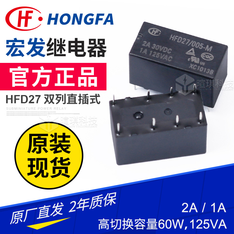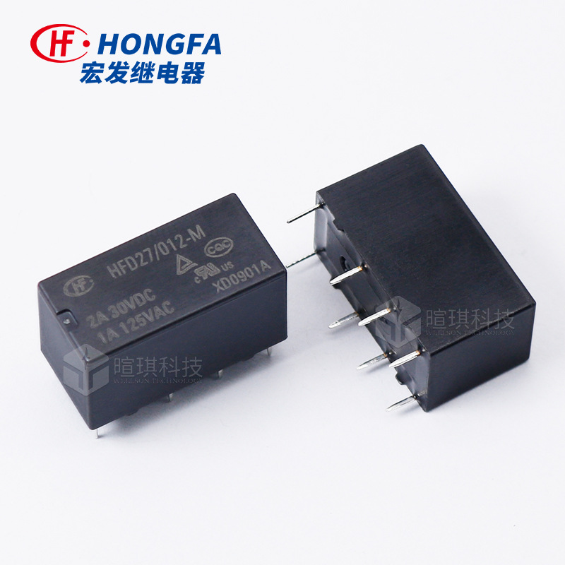 Реле Hongfa HFD27/012-S 2A, 12В/24В, восьмиконтактное, с прямым подключением, малогабаритное сигнальное реле