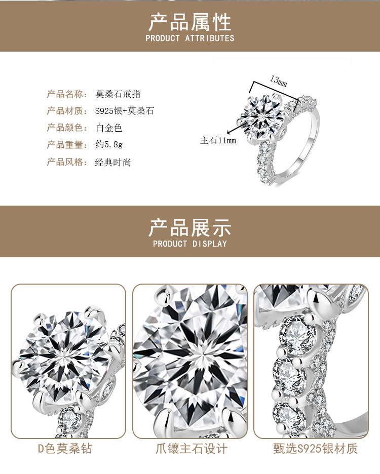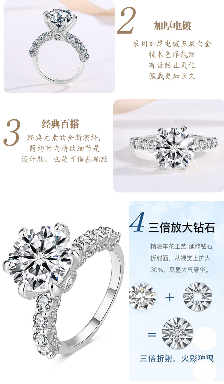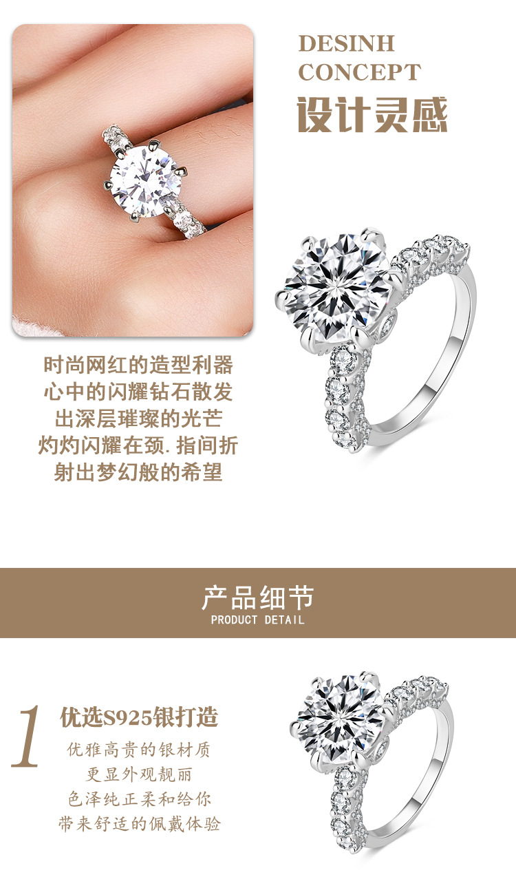 Трансграничные горячие продажи S925 серебро 5 карат мосанг бриллиантовое кольцо роскошный белый лунный свет с шестью когтями обручальное кольцо в прямом эфире оптовая продажа