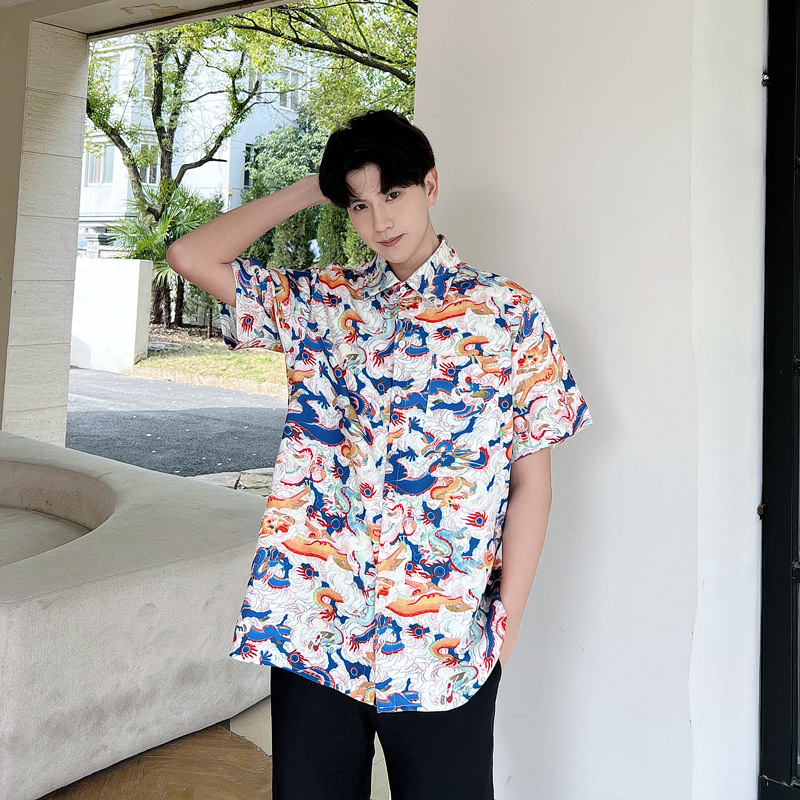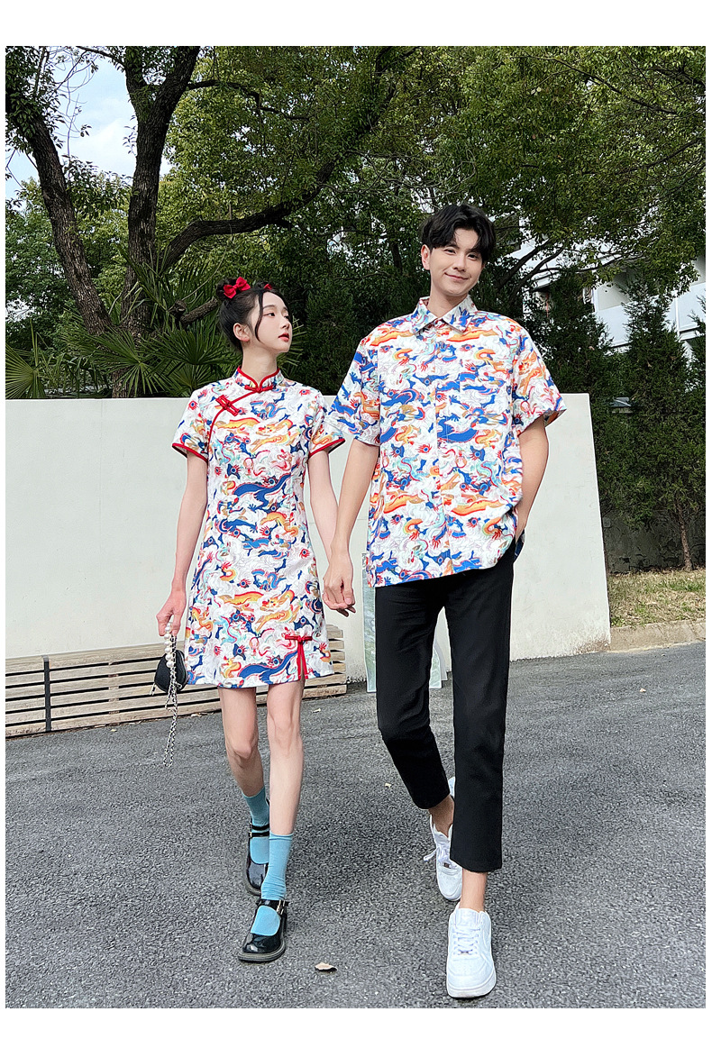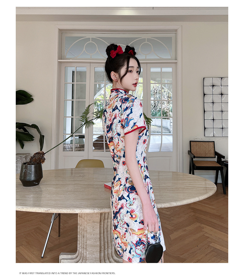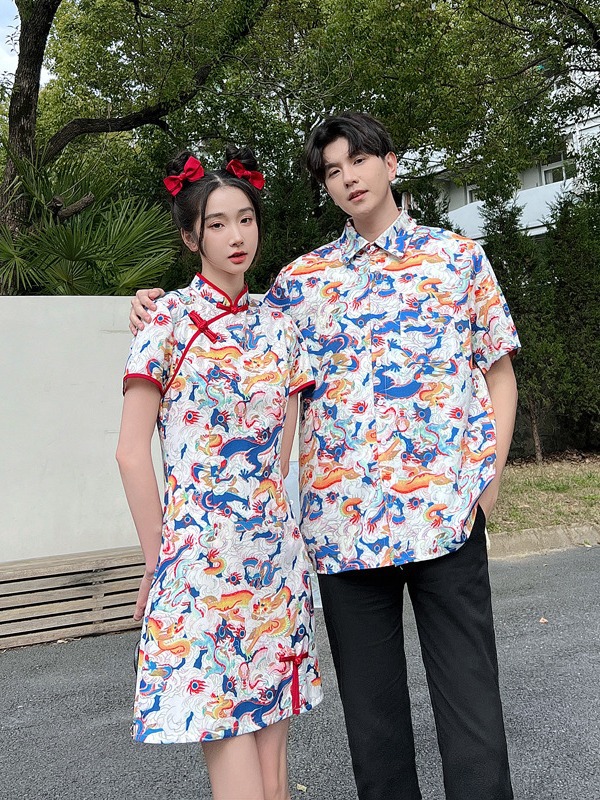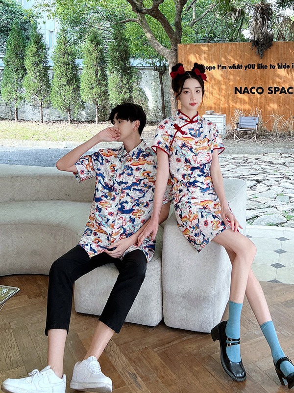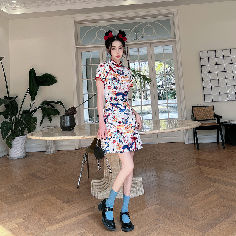 Китайский стиль пара ретро улучшенный нерегулярный дизайн с принтом с открытым принтом плюс размер cheongsam платье рубашка с отворотом