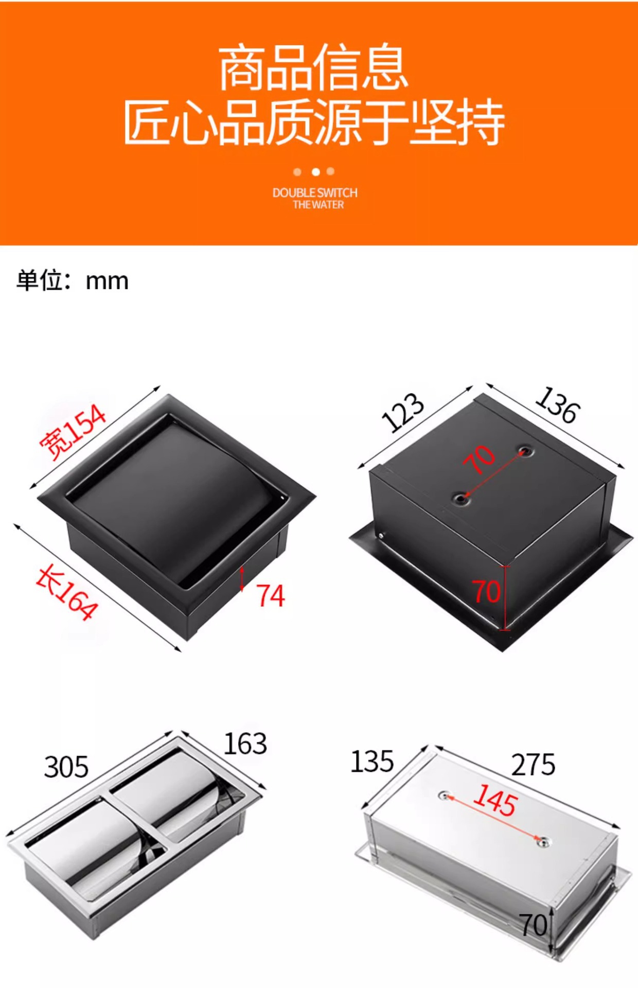 Черный диспенсер для салфеток из нержавеющей стали 304, встраиваемый держатель для туалетной бумаги, подходит для использования в отелях и дома, настенный держатель для рулонов бумаги.