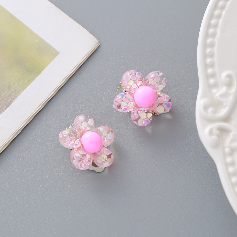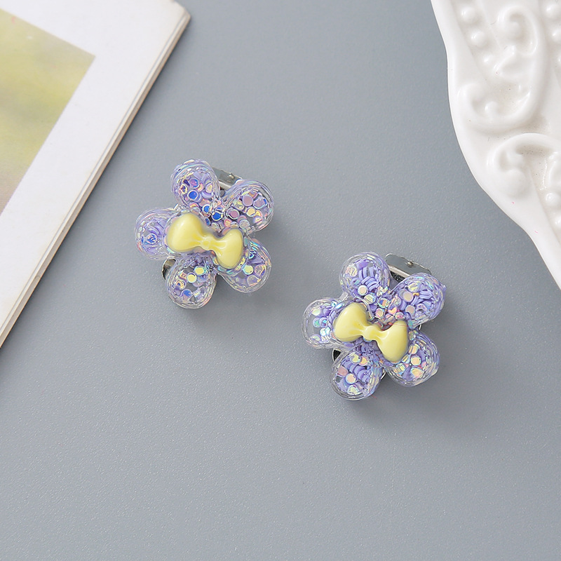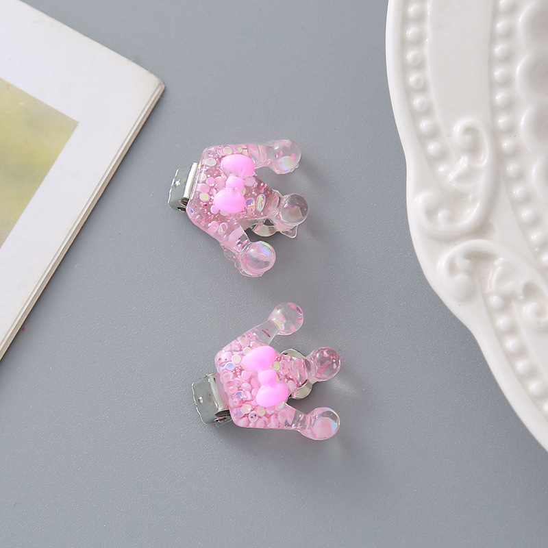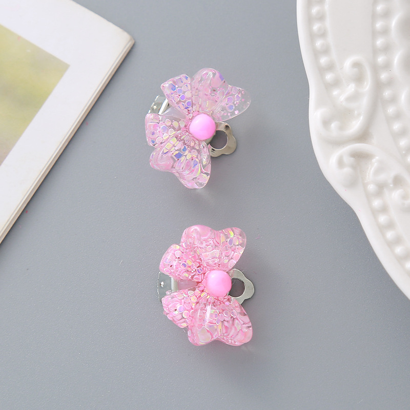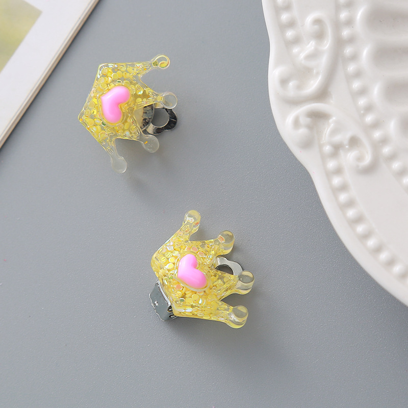 Детские клипсы для девочек и малышей без прокола в ушах, безболезненные, милые, из смолы с блестками, в виде короны, цветка, принцессы, серьги-украшения