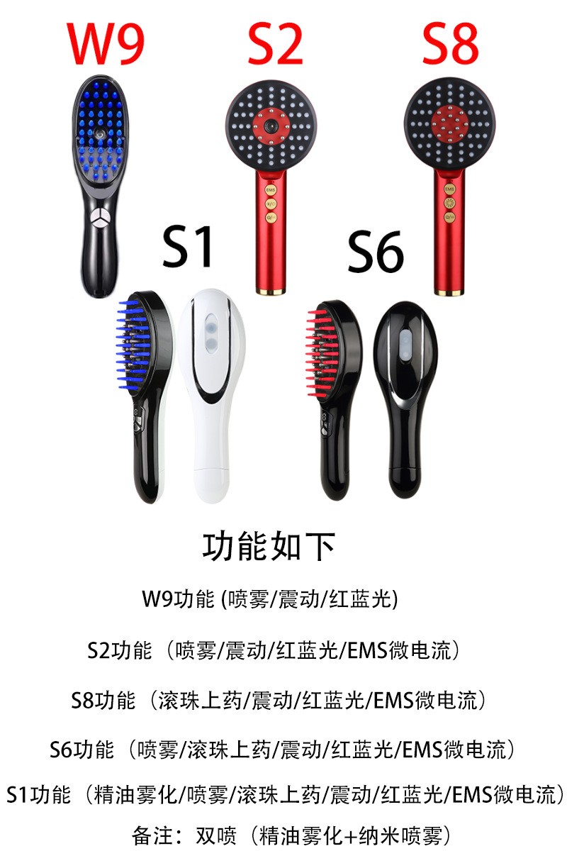 Электрическая массажная расческа, трансграничный новый продукт, расческа для роста волос, массажер для головы, красный свет, терапия, расческа для ухода за волосами, распылитель, массажная расческа