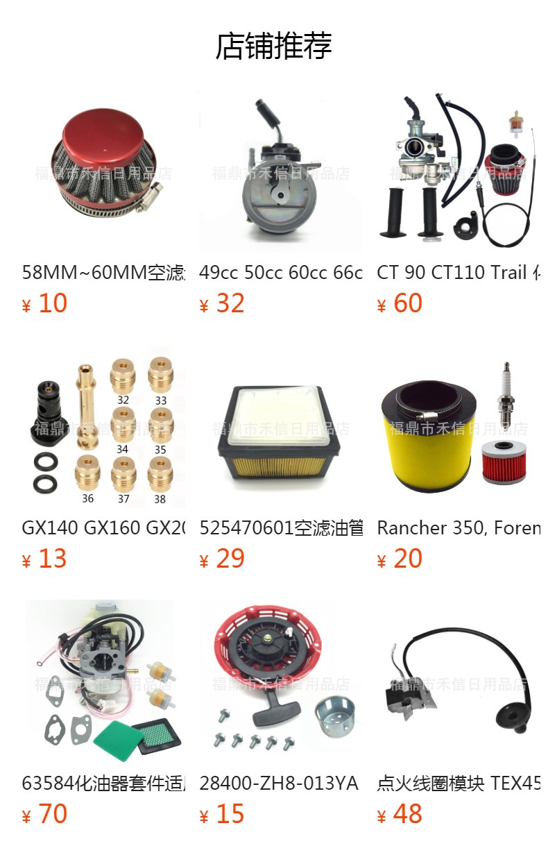 另供应割草机、绿篱机、扫雪机等园林机械化油器,摩托车化油器及配件,