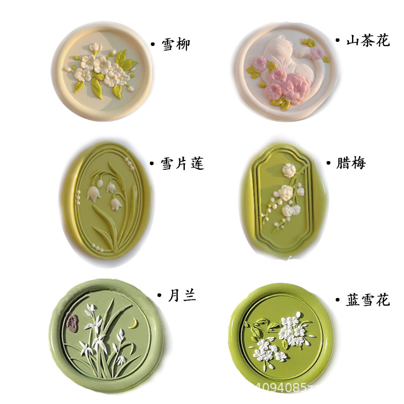 Полный набор из шести штампов + ручка из розового дерева; Полный набор из шести штампов + ручка из массива дерева красновато-коричневого цвета.; Печатная головка камелии; Головка с печатью снежной ивы; Снежный Лотос Печать Голова; Головка с печатью Lamei; Лунная печатная головка; Голова печати синей снежинки