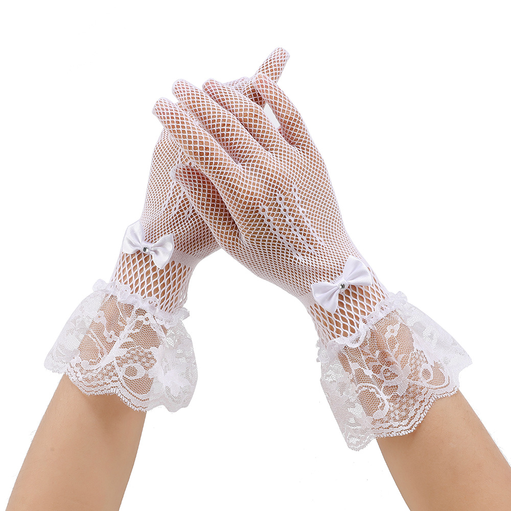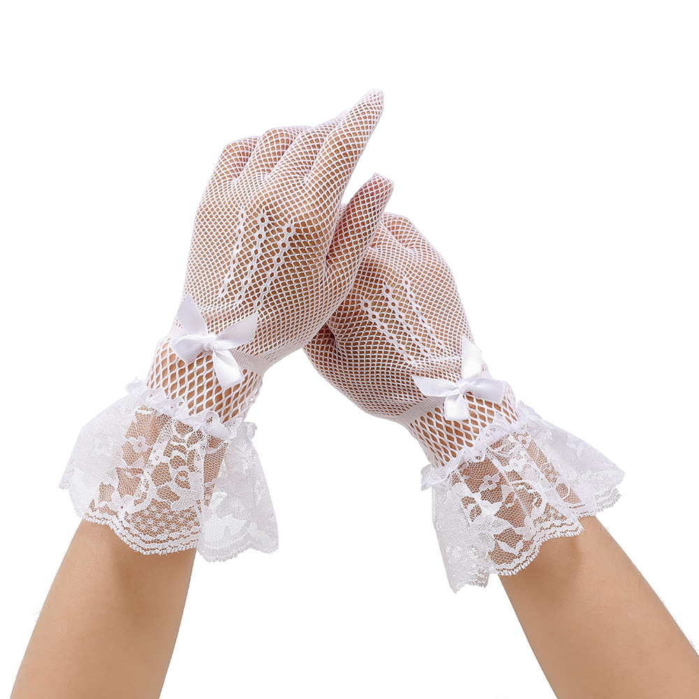 Женская рыболовная сеть лук кружева свадебные перчатки свадебное платье этикет сценическое выступление перчатки завод прямых продаж