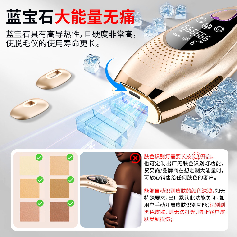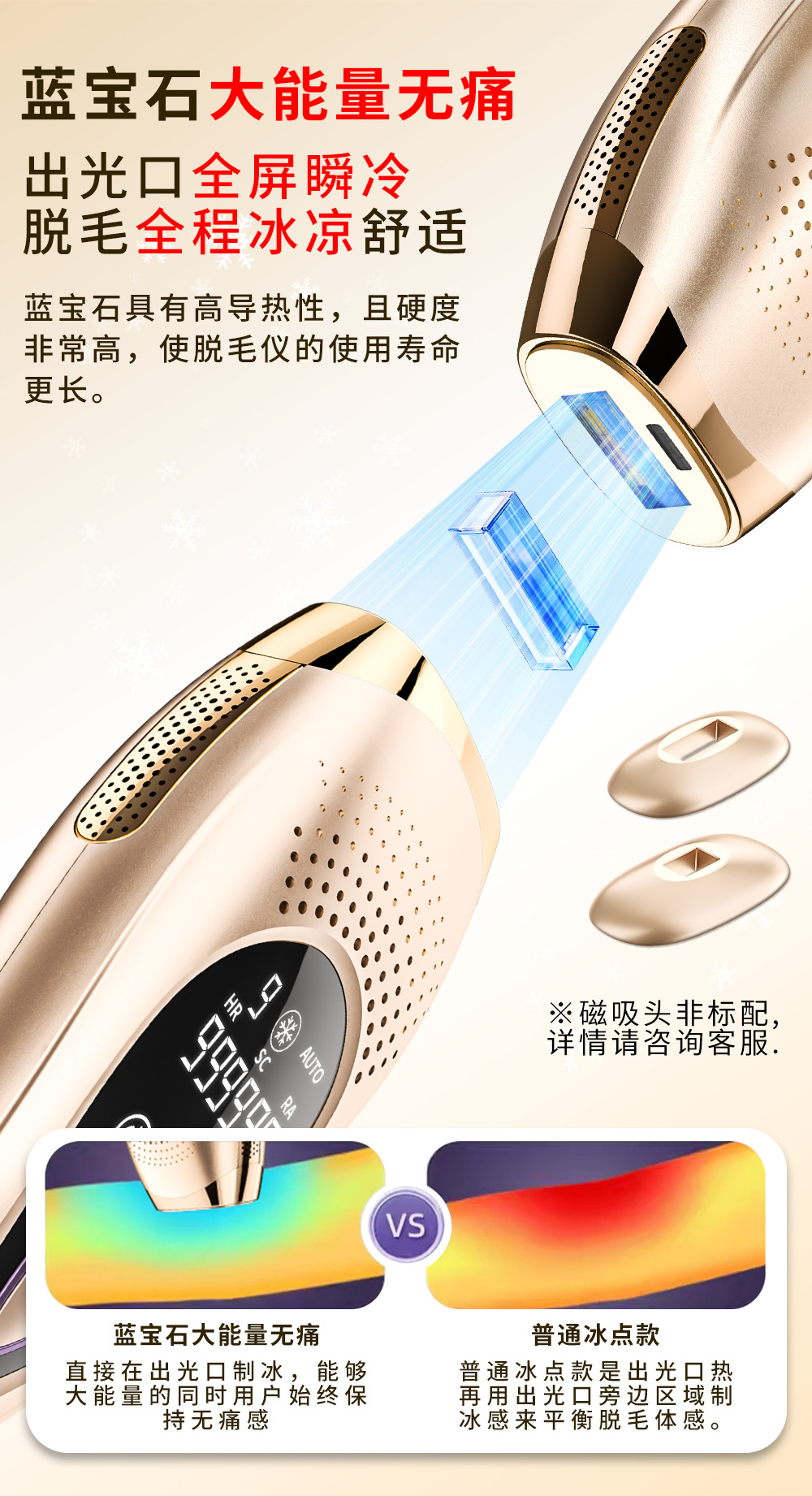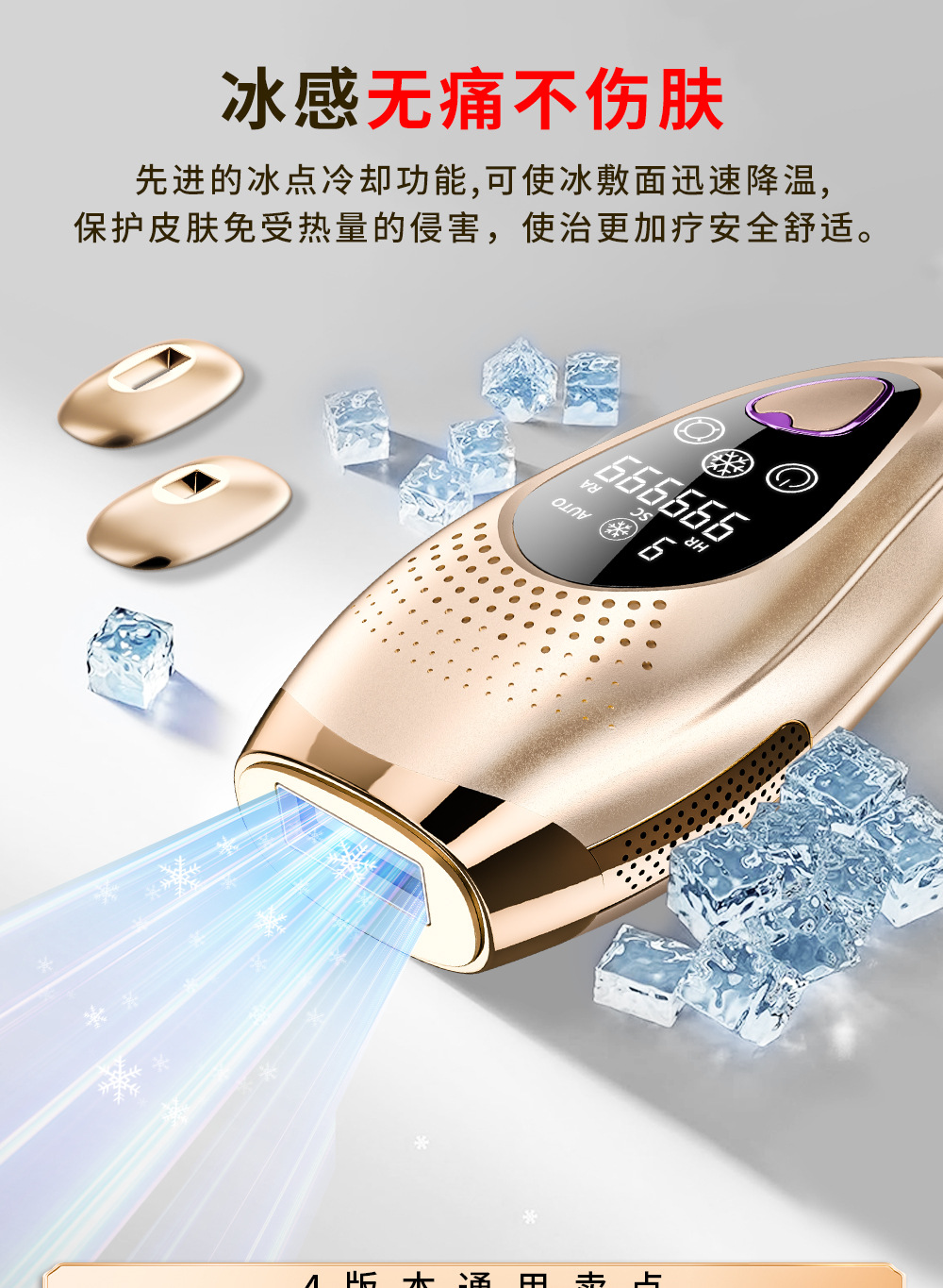 Портативный многофункциональный лазерный аппарат для удаления волос и омоложения кожи с 9 уровнями интенсивности, безболезненный, с технологией IPL и функцией заморозки, для использования в домашних условиях.