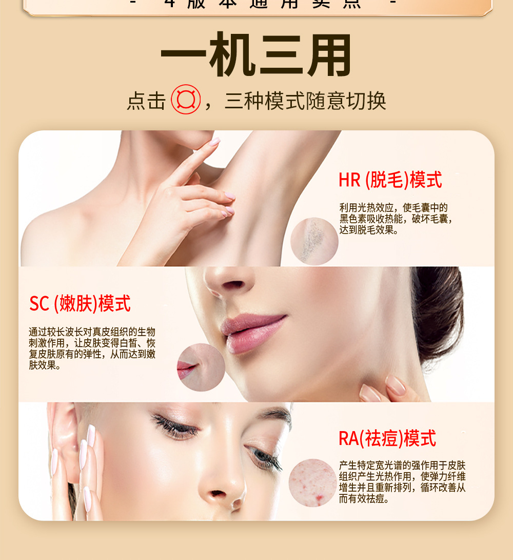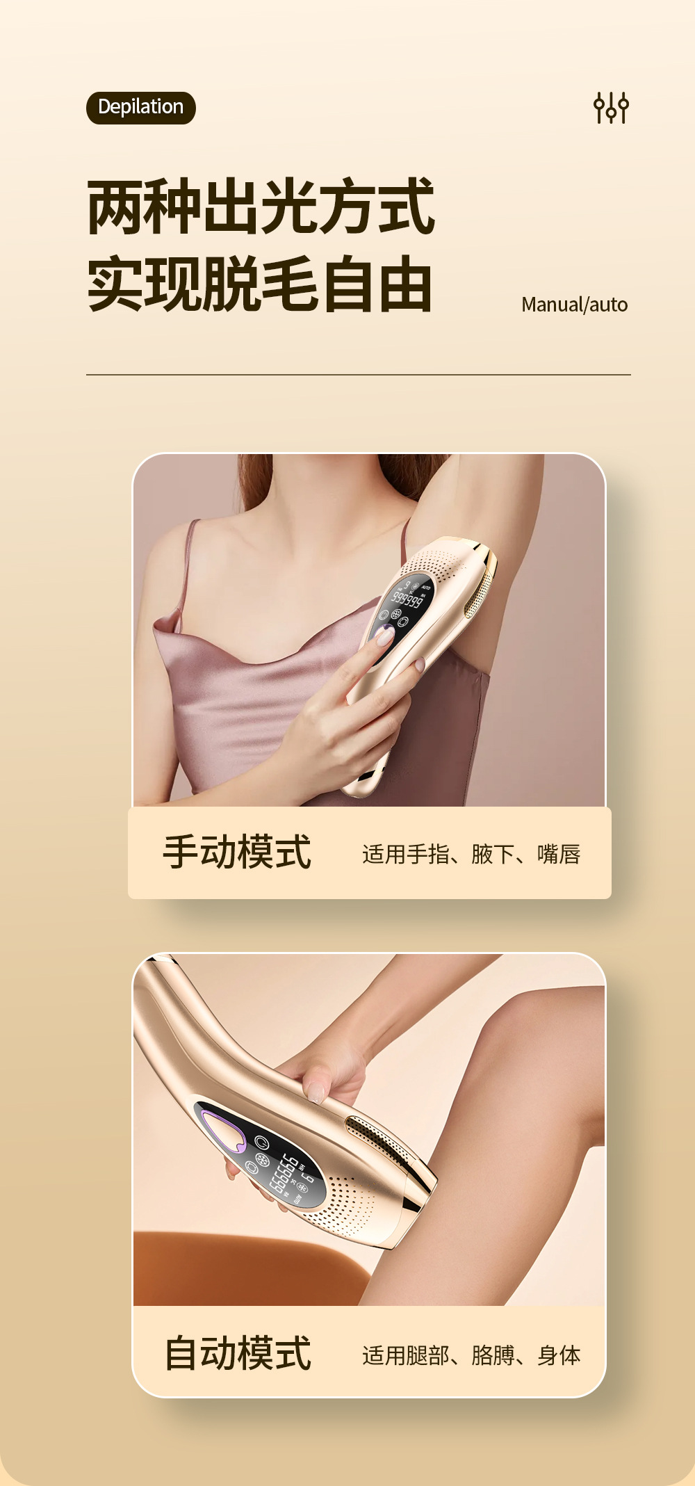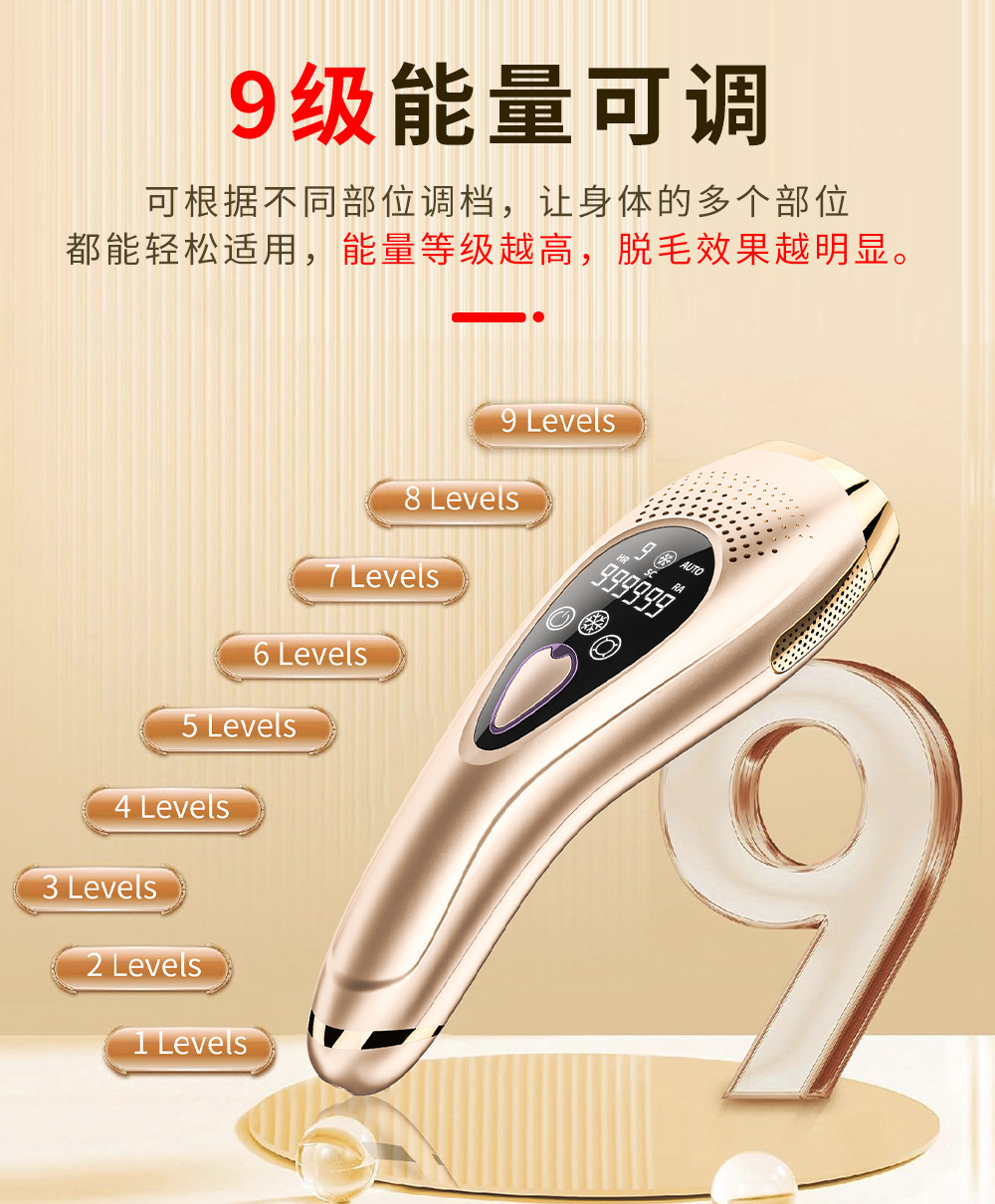 Портативный многофункциональный лазерный аппарат для удаления волос и омоложения кожи с 9 уровнями интенсивности, безболезненный, с технологией IPL и функцией заморозки, для использования в домашних условиях.