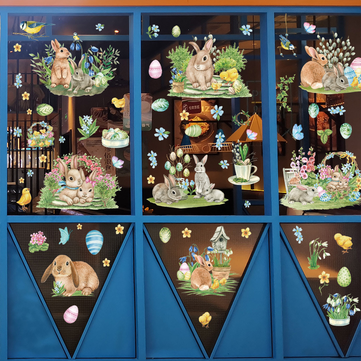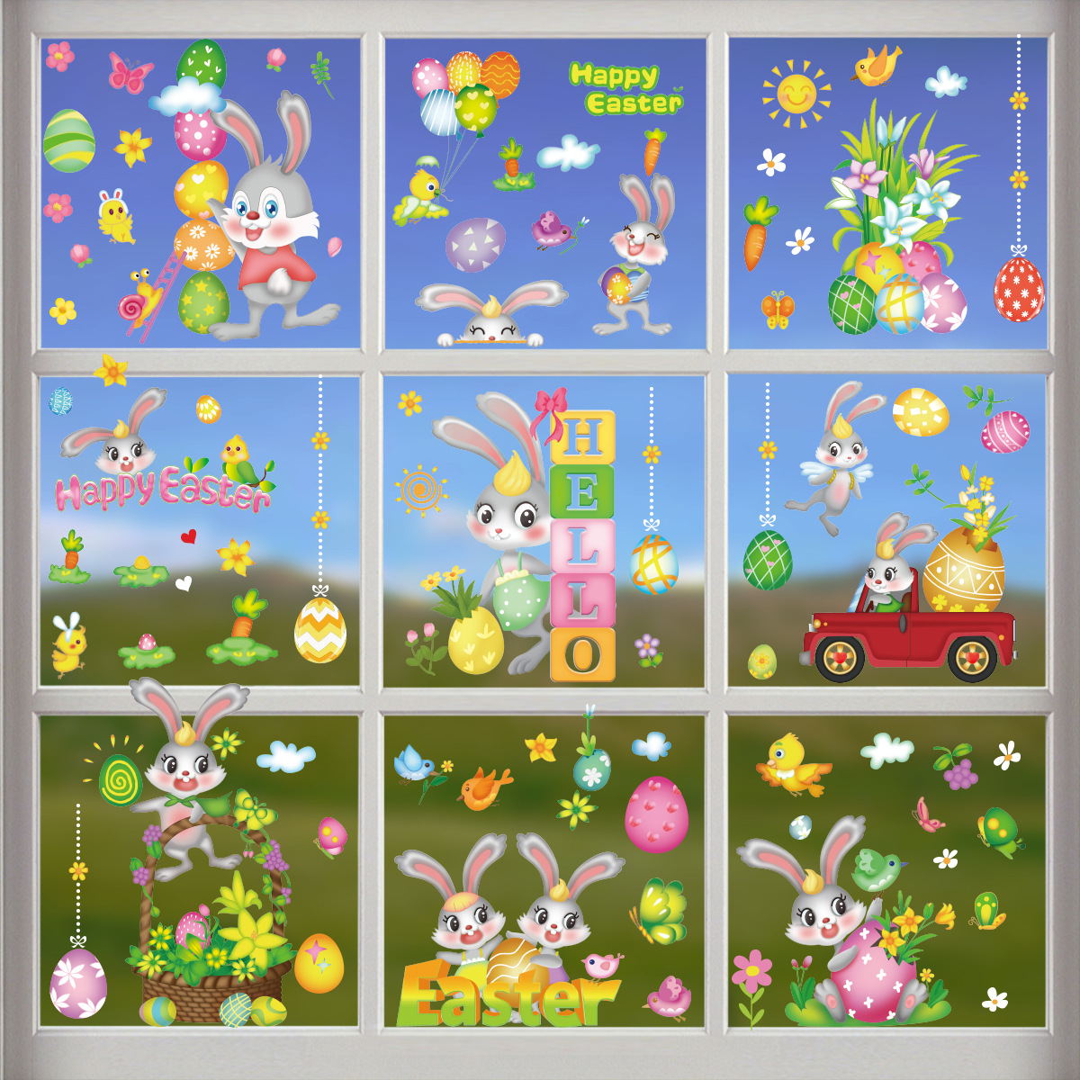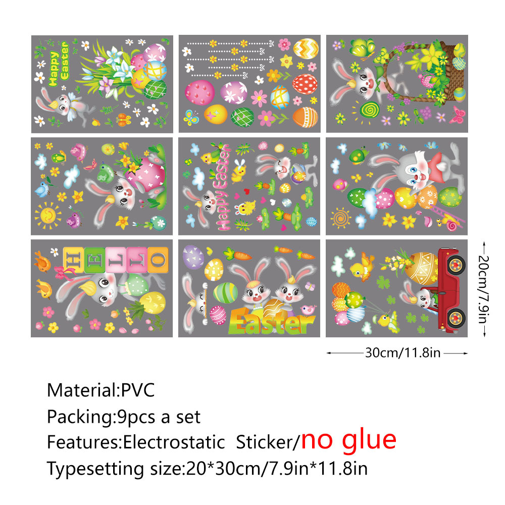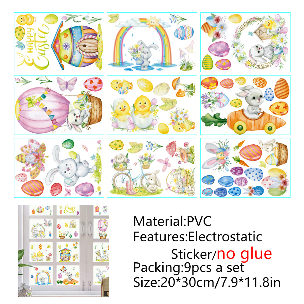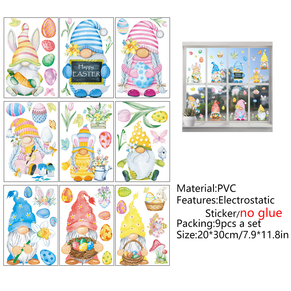 Трансграничный новый пасхальный кролик луга гномов яйца торговый центр стеклянные декоративные наклейки статические наклейки окна наклейки