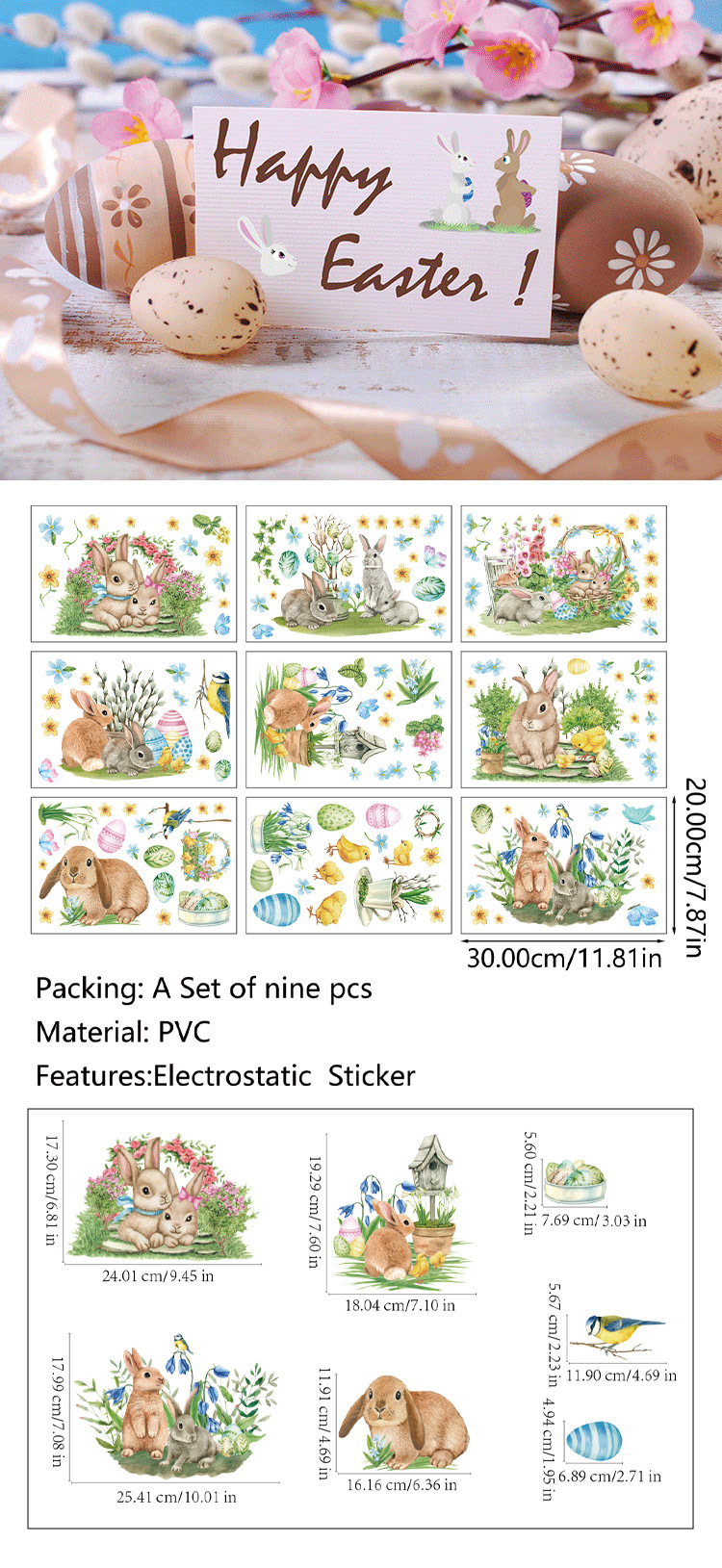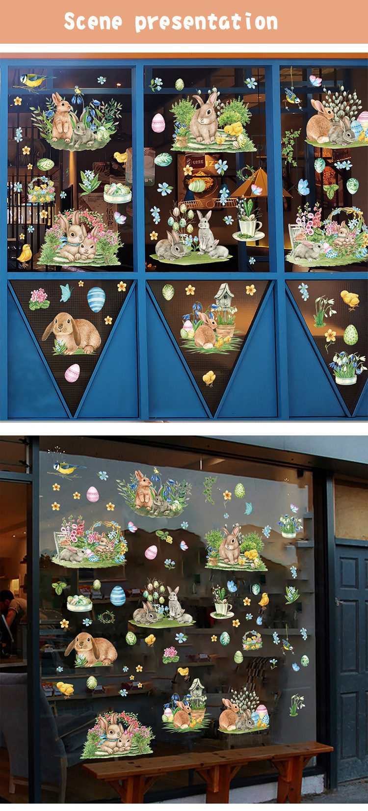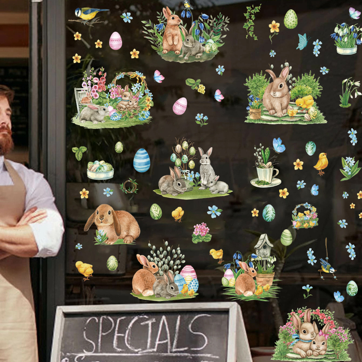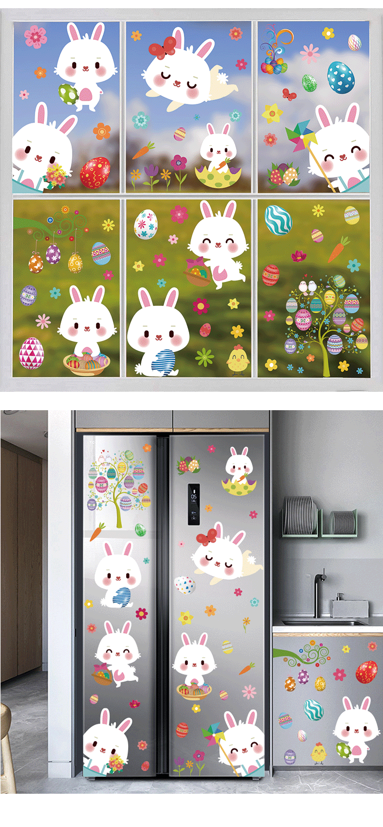 Трансграничный новый пасхальный кролик луга гномов яйца торговый центр стеклянные декоративные наклейки статические наклейки окна наклейки