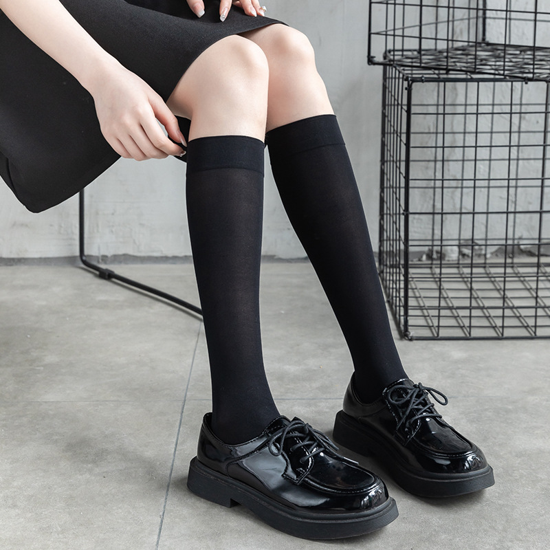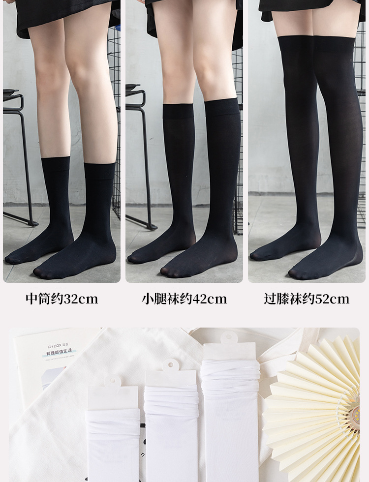 Женские гольфы выше колена, антискользящие вельветовые носки, черные летние тонкие носки из ледяного шелка