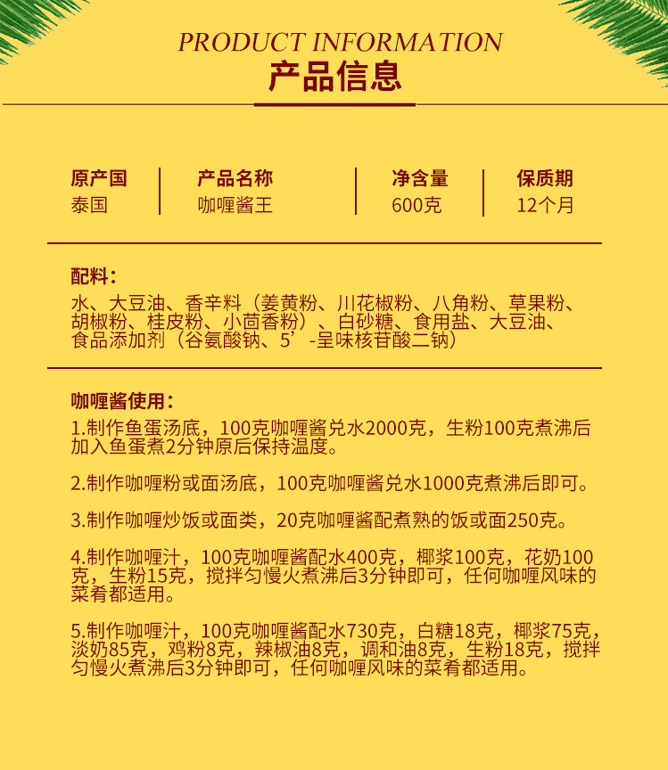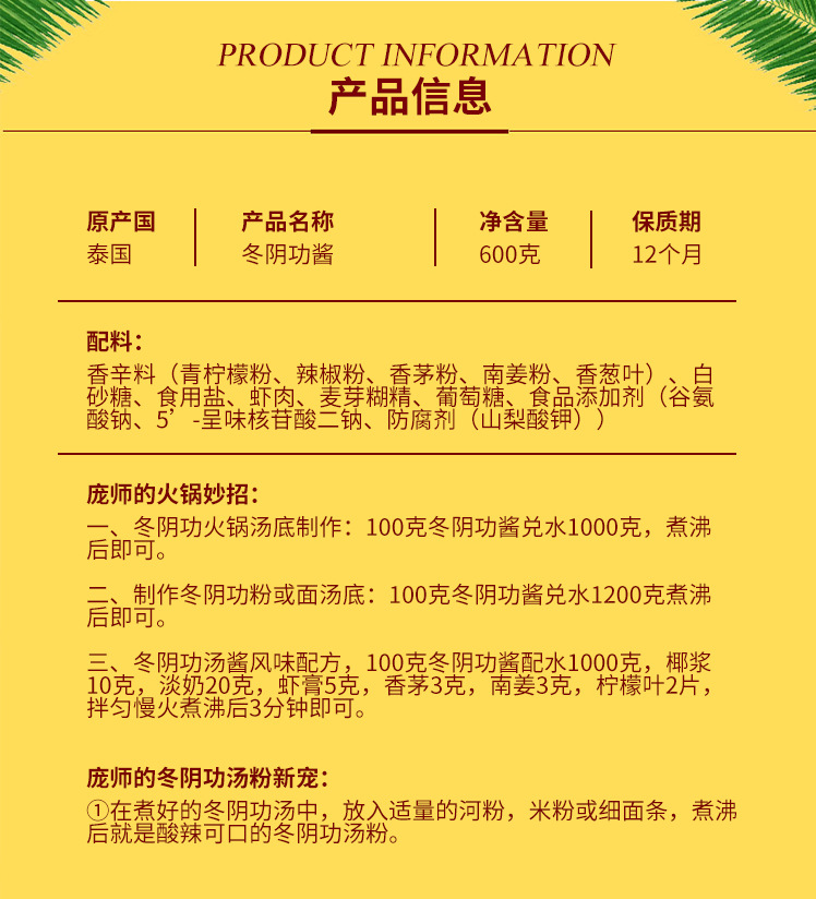 Pang Shi Карри Ван 600 г Домашний тайский жареный рисовый соус Карри Курица Тайский суп Тим Инь Гонг