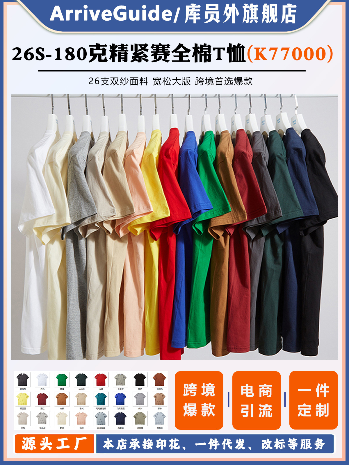 Бигуди, внешняя футболка 180 г, летняя, с короткими рукавами, плотная, из чистого хлопка, с круглым вырезом, K77000kuyuanwai