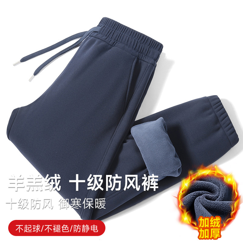 [Овечья шерсть] Зимние Холодостойкие утолщенные брюки на флисовой подкладке, мужские теплые хлопковые брюки, повседневные спортивные брюки, мужские брюки, спортивные штаны