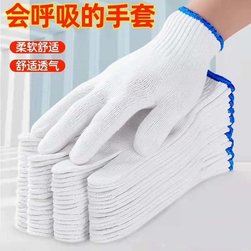 Перчатки по охране труда оптом, износостойкие белые нейлоновые утолщенные противоскользящие хлопчатобумажные защитные мужские перчатки для ремонта автомобилей, строительная площадка, работа, трудовая работа