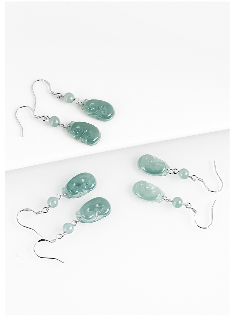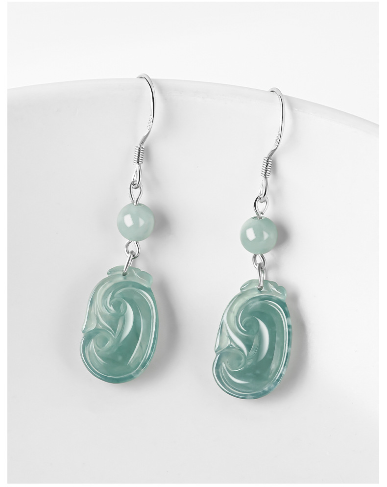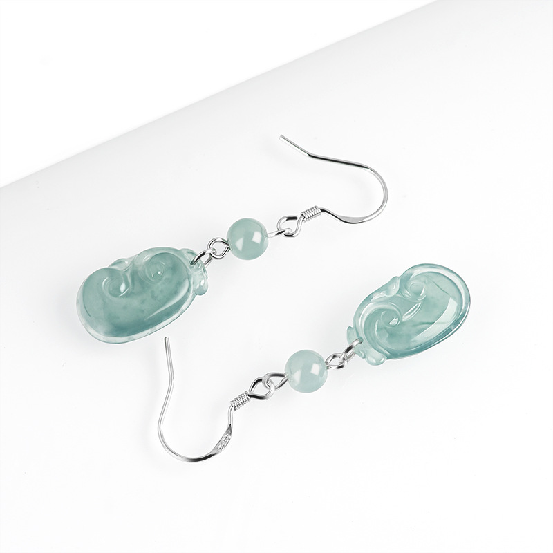 Серьги Ruyi с нефритовой синей водой D243