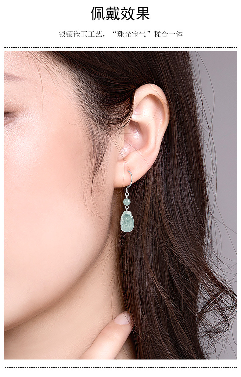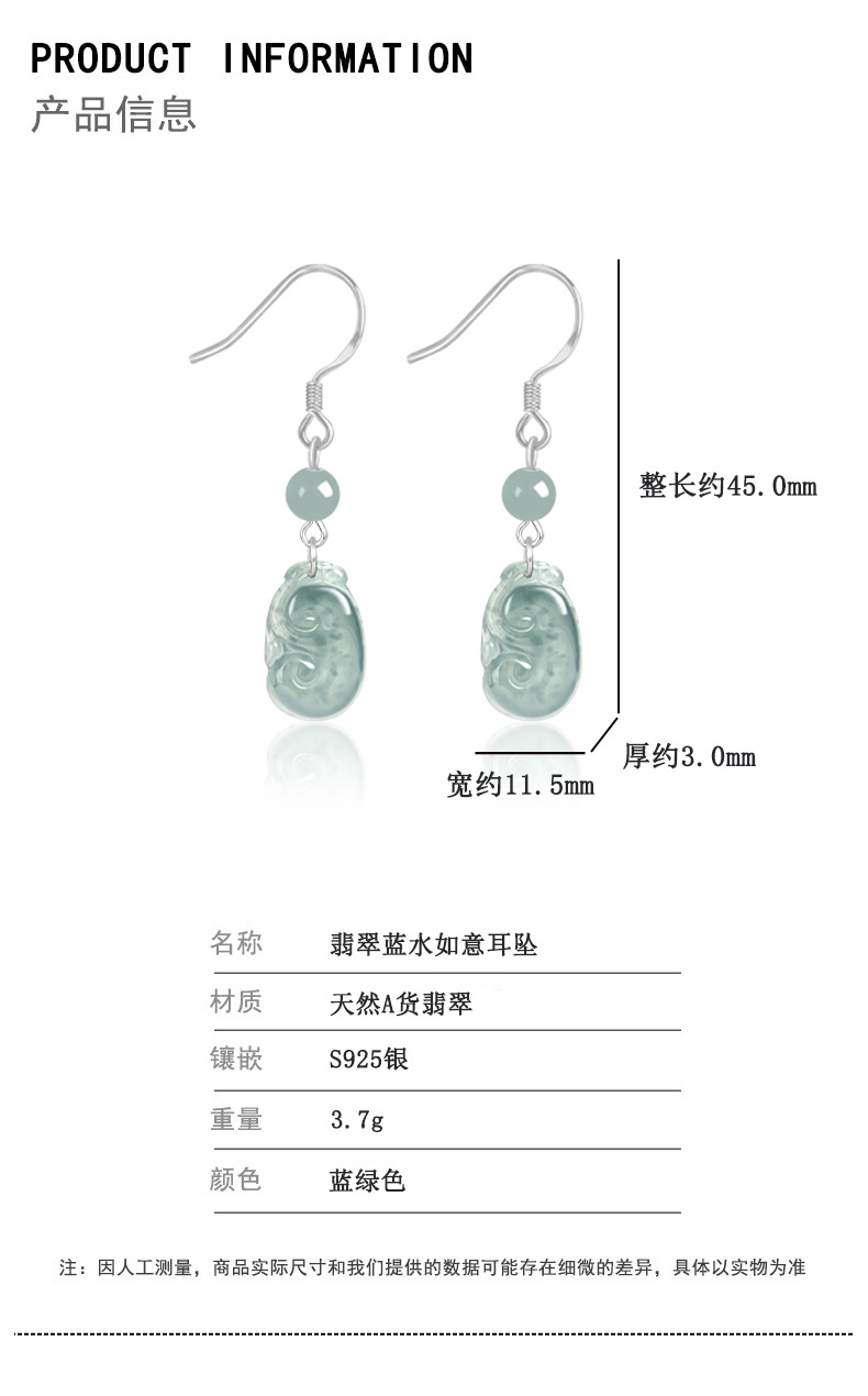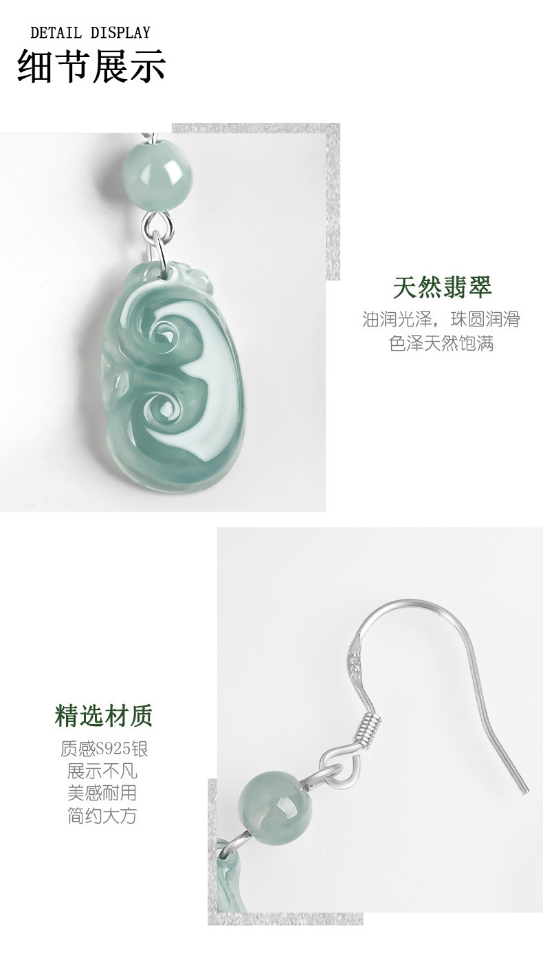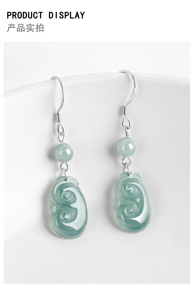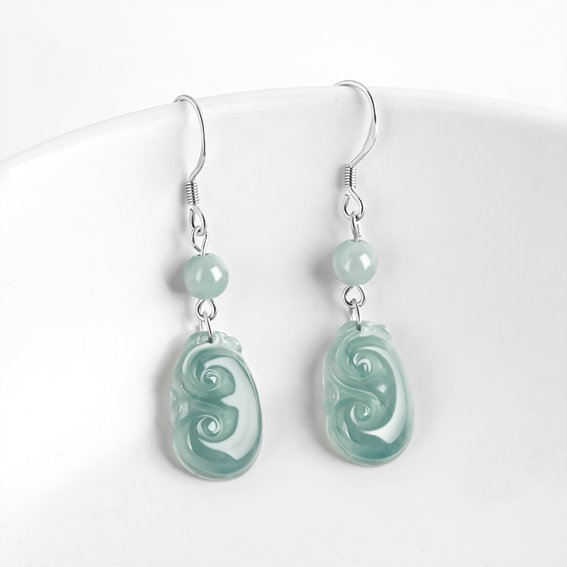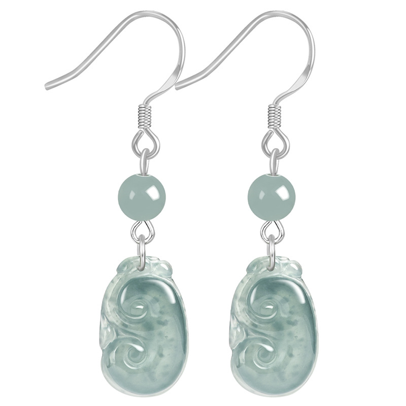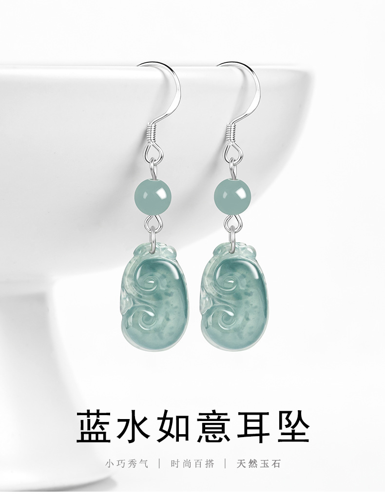 Натуральные изделия Изумрудная голубая вода Руйи Серьги S925 Серебряное Ледяное Нефритовое Модное Женское Серьги Серьги Простые Серьги