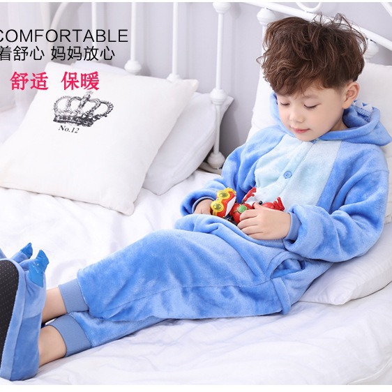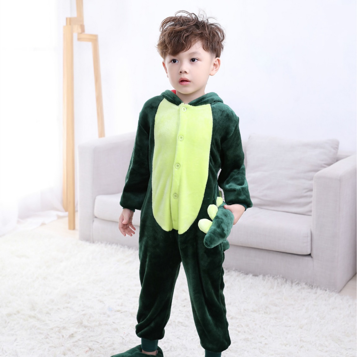 Осенне-зимняя детская цельная Пижама с динозаврами, фланелевая Домашняя одежда с длинными рукавами и мультяшными животными для мальчиков и девочек